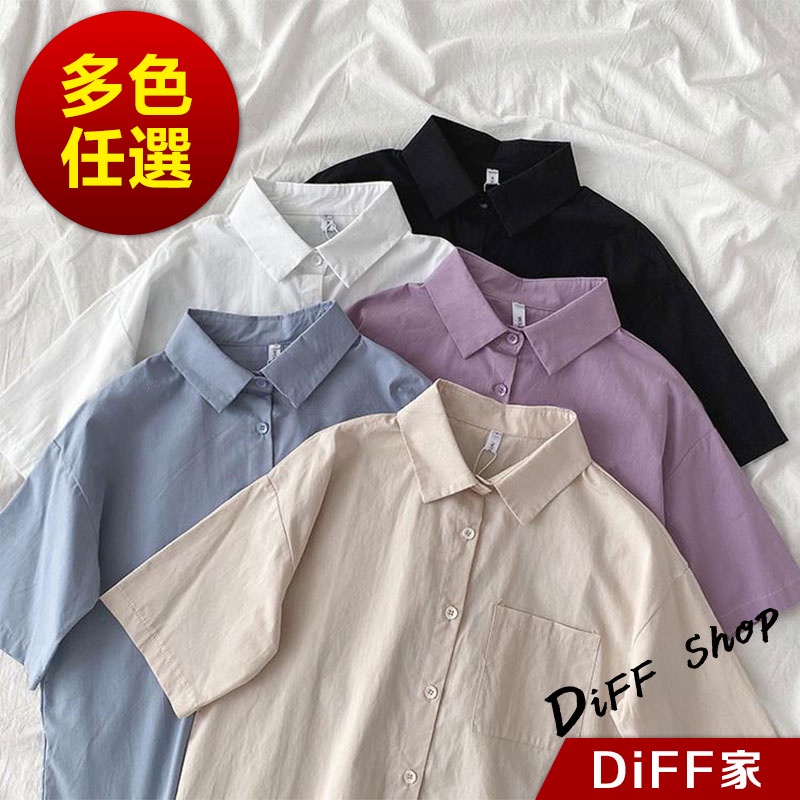 【DIFF】韓版百搭翻領短袖襯衫 上衣 短袖上衣 短袖t恤 女裝 顯瘦上衣 衣服 寬鬆上衣 素T【T376】【T376】紫色|【T376】白色|【T376】杏色|【T376】藍色|【T376】黑色Shirts & BlousesDiFF shop