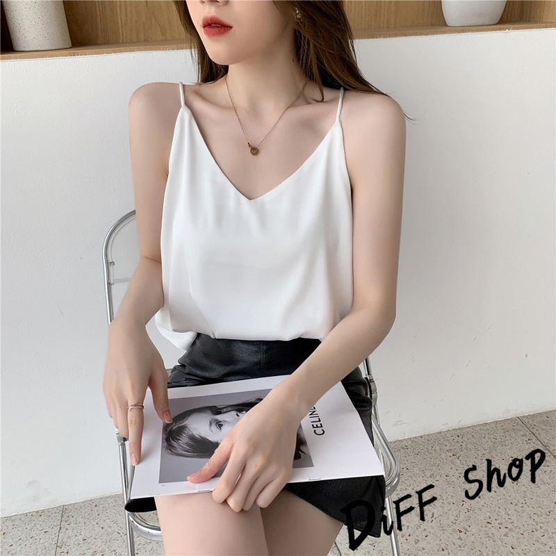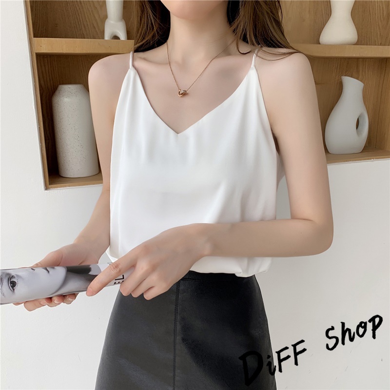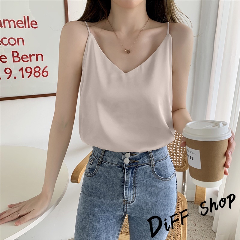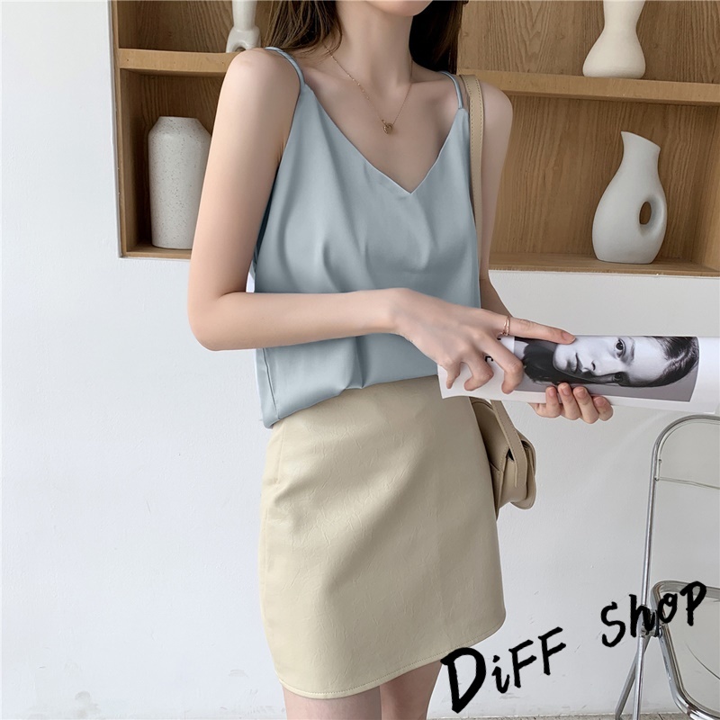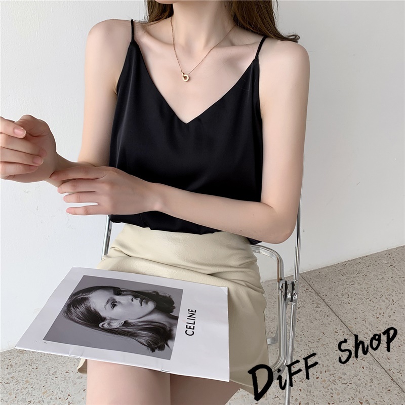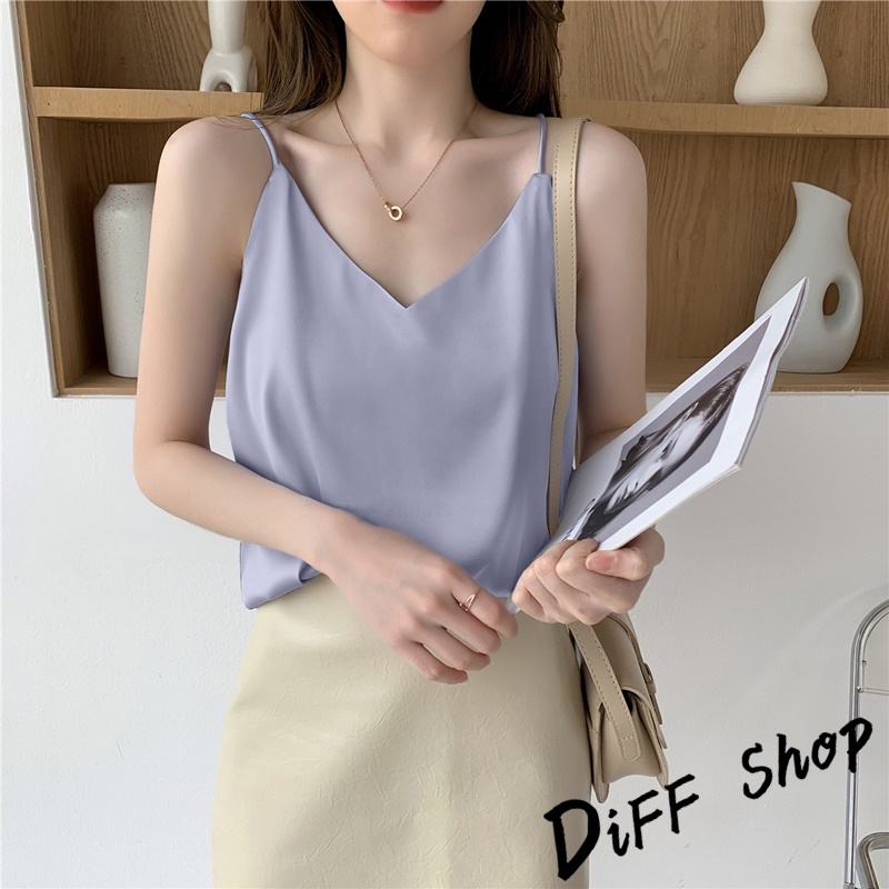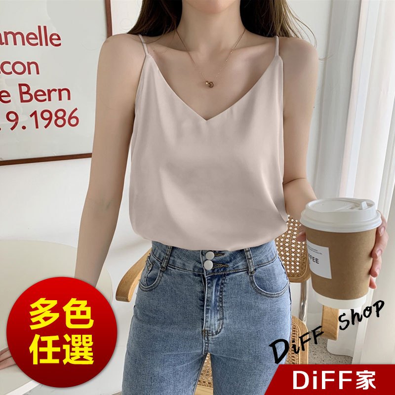【DIFF】韓版高級感緞面V領吊帶背心 小可愛 女裝 衣服 短版上衣 短板上衣 運動背心 運動上衣【V334】【V334】優雅杏|【V334】奶咖色|【V334】百搭黑|【V334】青灰色|【V334】夢幻紫Tanks & CamisolesDiFF shop