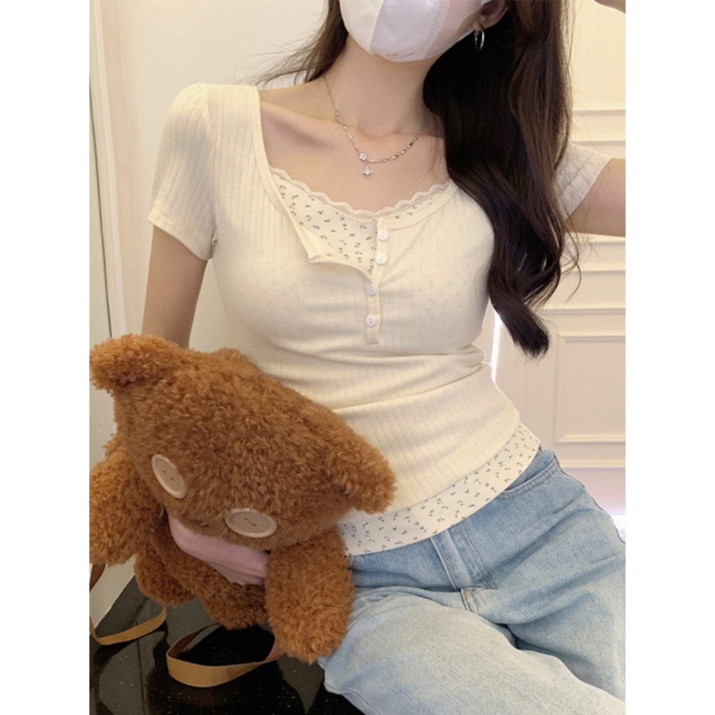人间甜豆~ 短袖 短版上衣 韓系短袖 bm 風上衣 純慾風 女短版上衣 短袖 小碎花上衣 衣服女短版 少女衣服杏色【優質版】,S|杏色【優質版】,M|杏色【優質版】,L|杏色,S|杏色,M|杏色,LT-shirtsCHAOO 台北原創服飾品牌