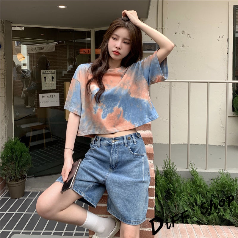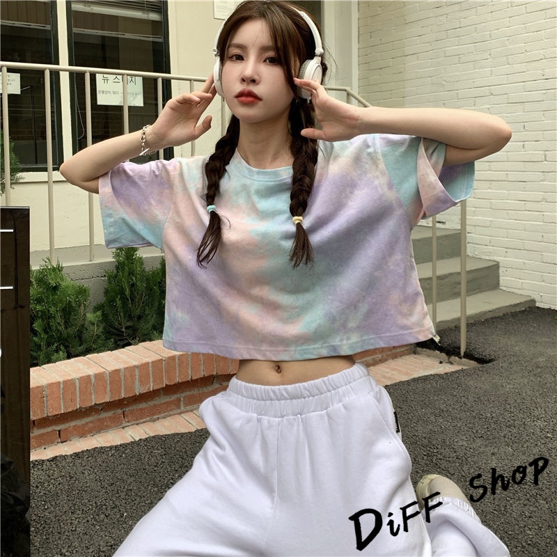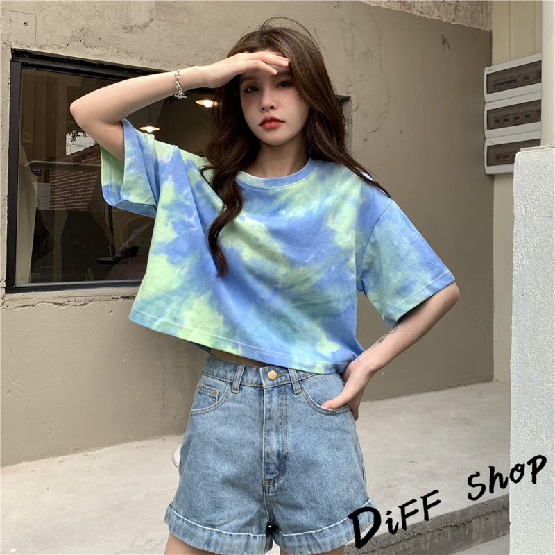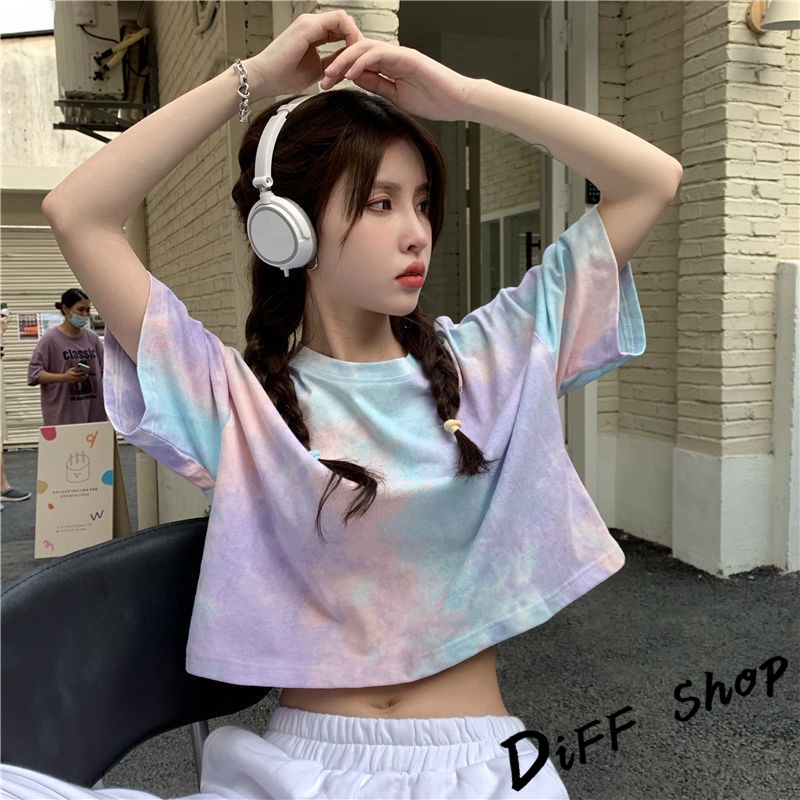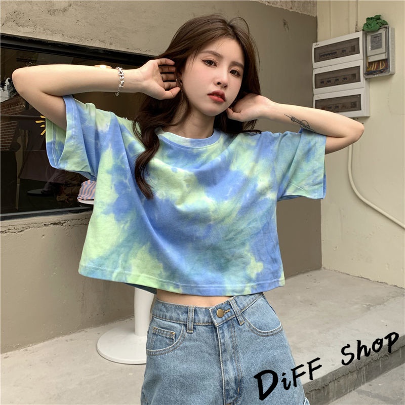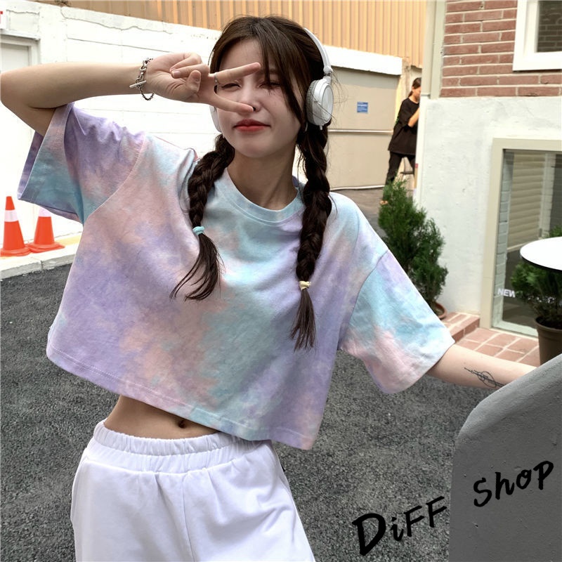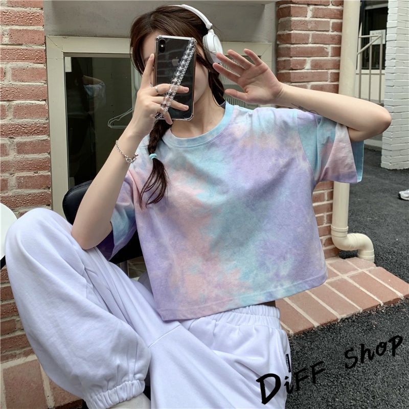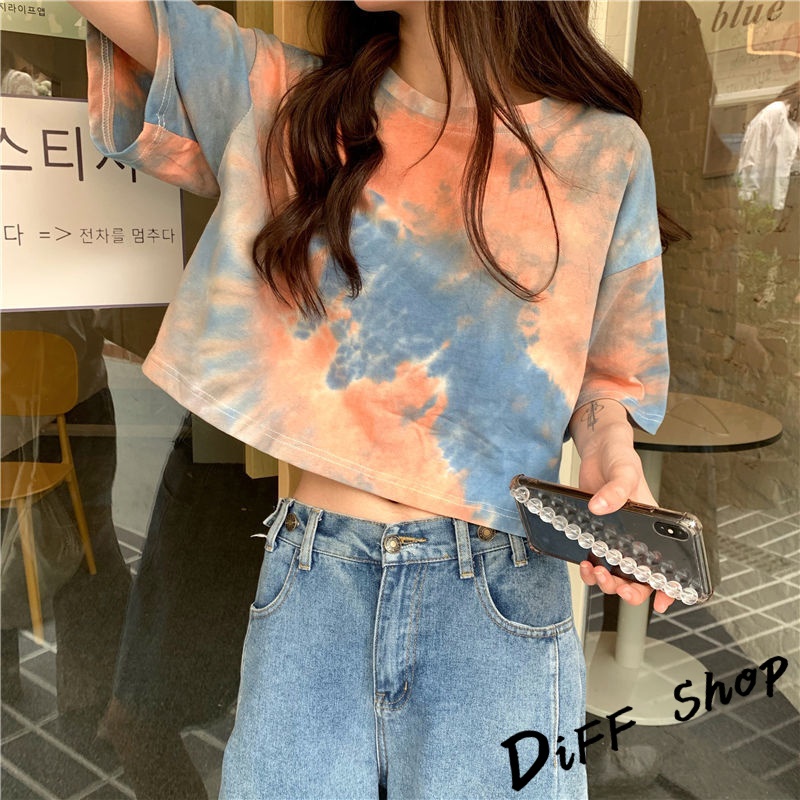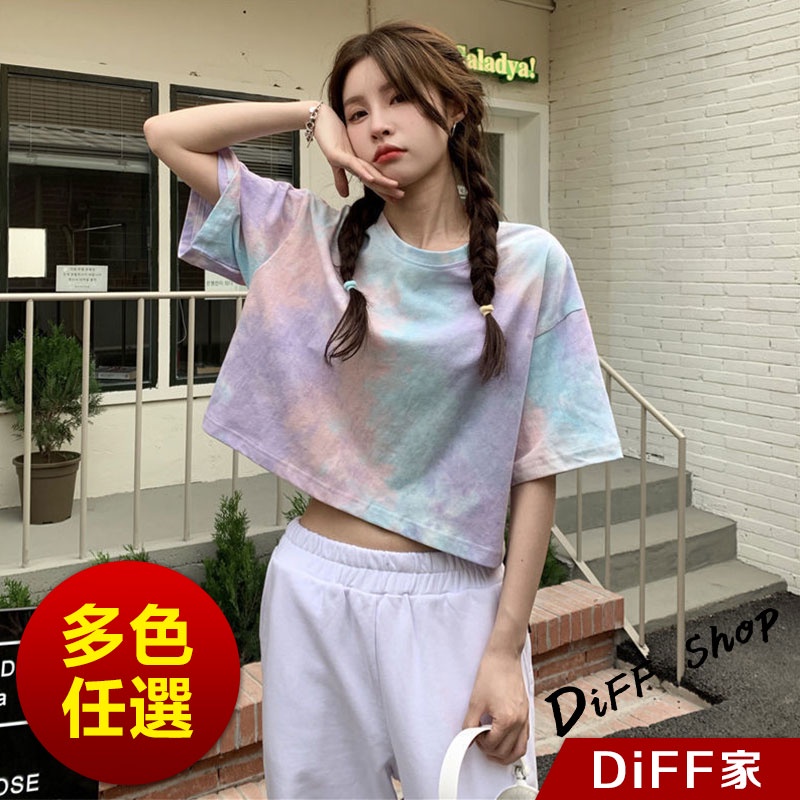 【DIFF】韓版小眾炫染寬鬆短版上衣 短袖上衣 短袖t恤 女裝 顯瘦上衣 衣服 寬鬆上衣 短板上衣【T383】
