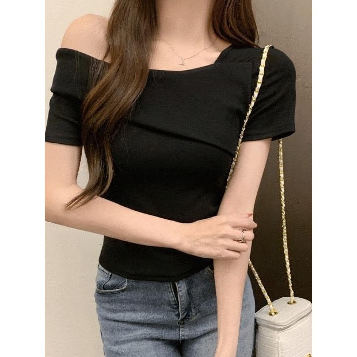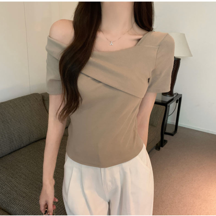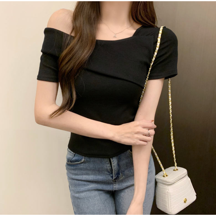 Codibook|韓國 Dearlow 方領露肩短袖針織上衣[預購]短袖上衣 T恤 女裝黑色,S|白色,S|米褐色,S|黑色,M|白色,M|米褐色,MT-shirtsCodibook 韓國女裝購物平台