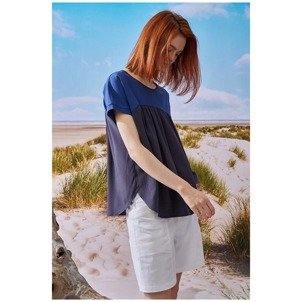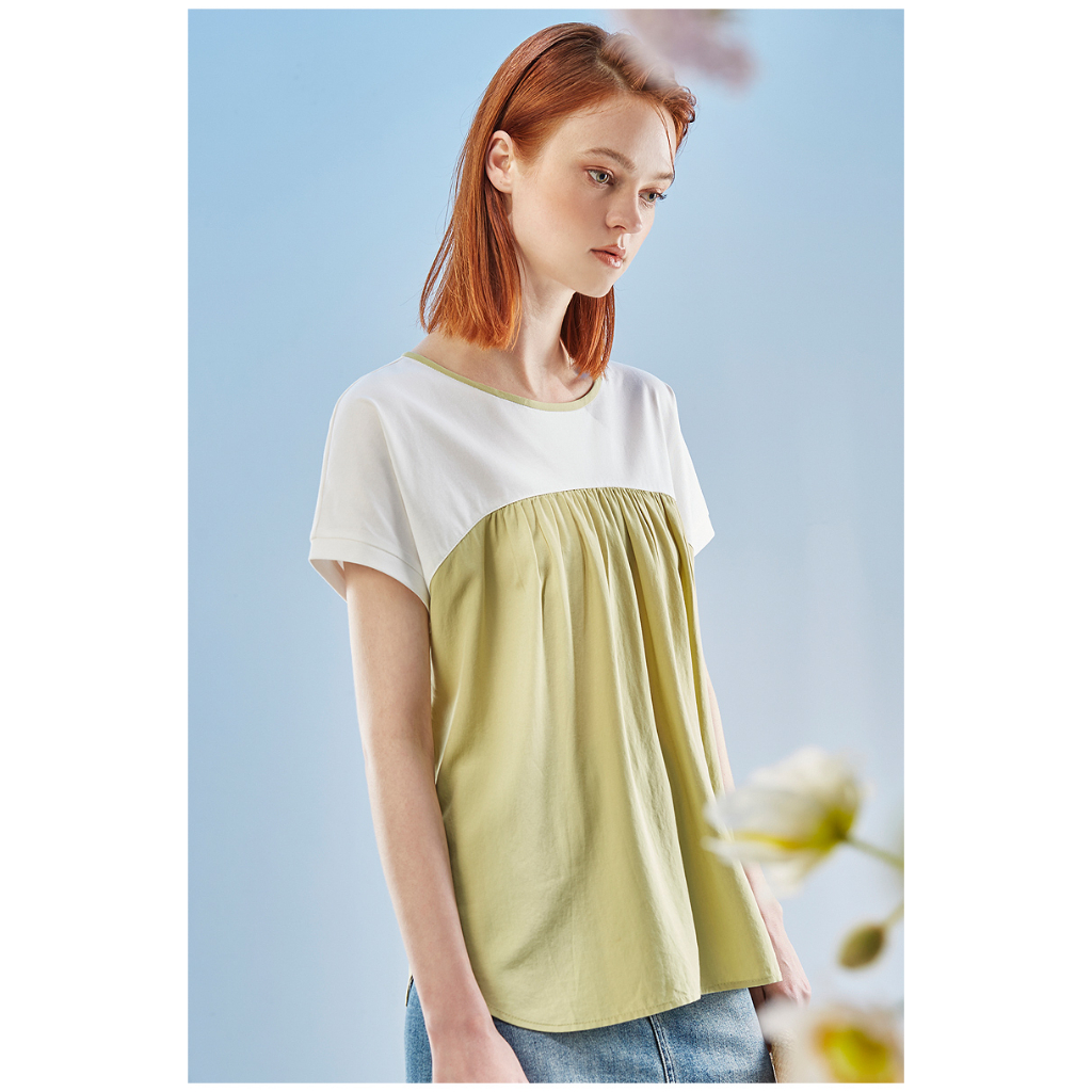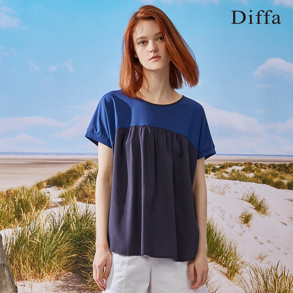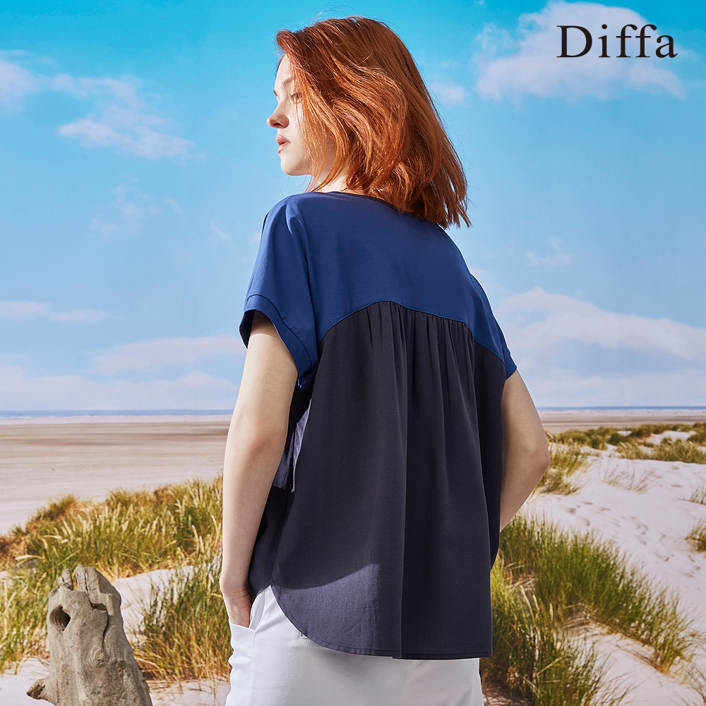【Diffa】連袖異素材拼接上衣3768-8253綠,S|綠,M|藍,S|藍,MOthersDiffa