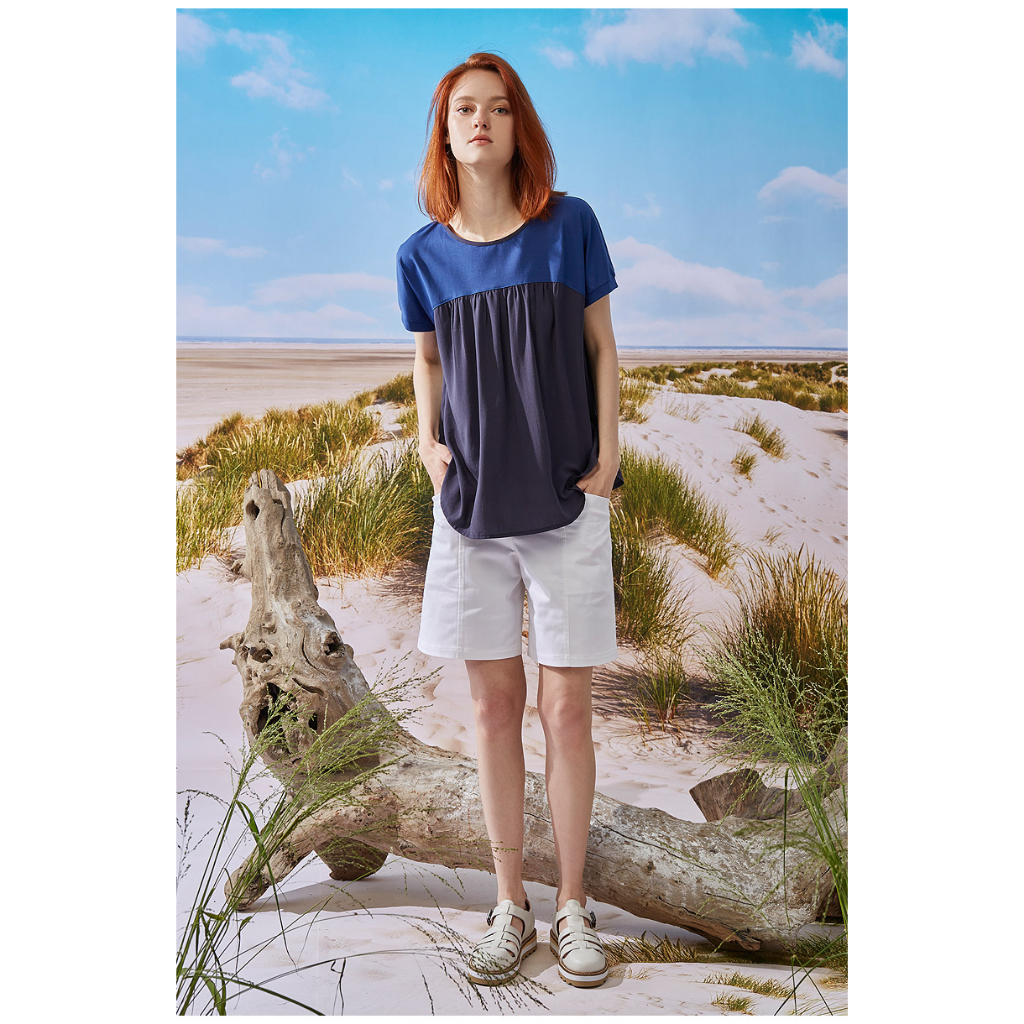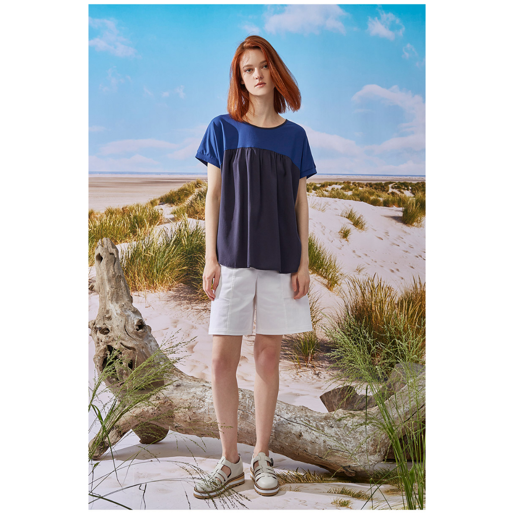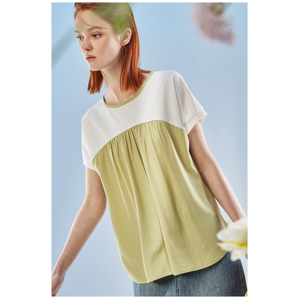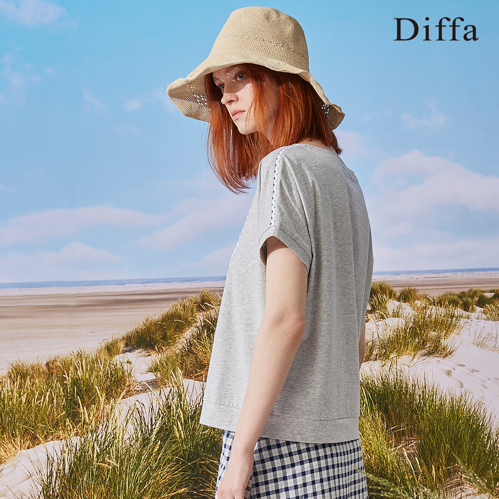 【Diffa】連袖異素材拼接上衣3768-8253綠,S|綠,M|藍,S|藍,MOthersDiffa