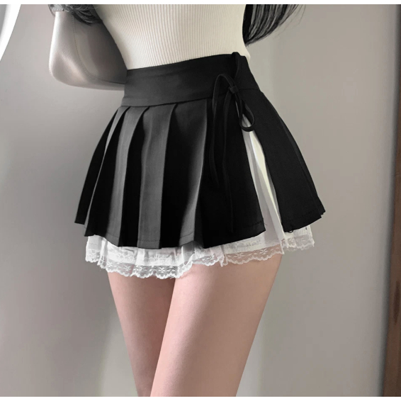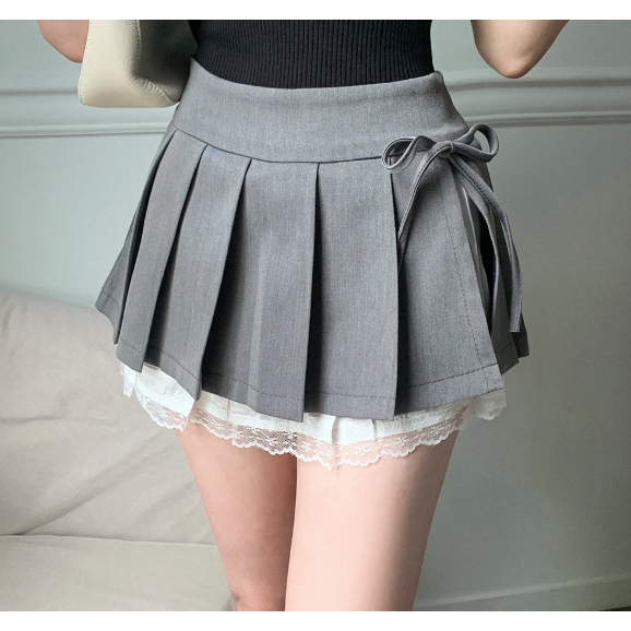 Codibook|韓國 secon’de secon 荷葉邊蝴蝶結蕾絲百褶迷你裙[預購]裙子 百褶裙 女裝象牙白,S|灰色,S|黑色,S|象牙白,M|灰色,M|黑色,MCodibook 韓國女裝購物平台
