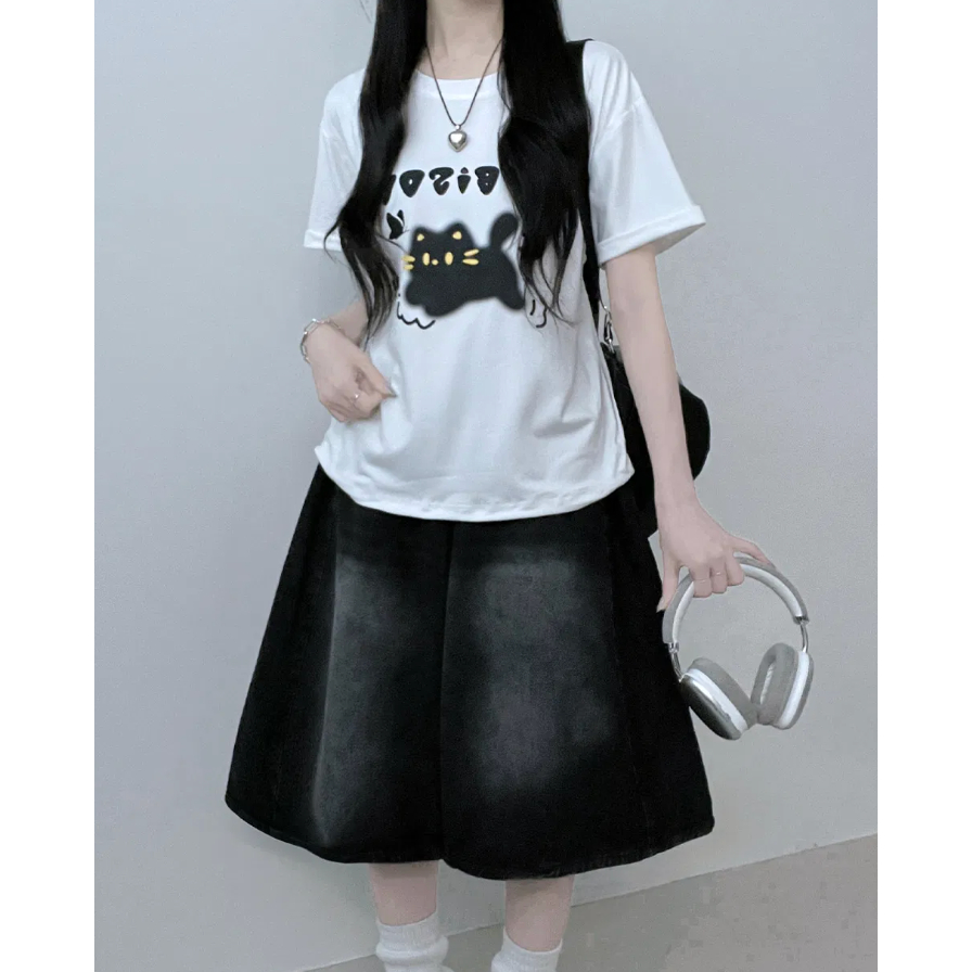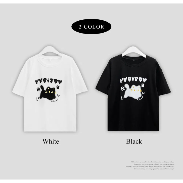 Codibook|韓國 ccomeng 可愛貓咪印花文字寬鬆短袖T恤[預購]短袖上衣 T恤 女裝白色,one size|黑色,one sizeT-shirtsCodibook 韓國女裝購物平台