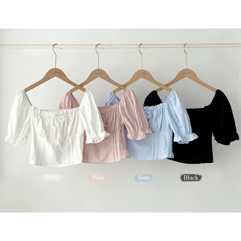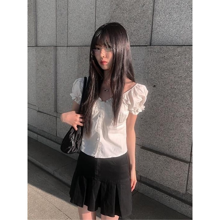 Codibook|韓國 anyonemore 泡泡袖抽褶短袖襯衫 2色[預購]短袖上衣 女裝free,白色|free,黑色T-shirtsCodibook 韓國女裝購物平台