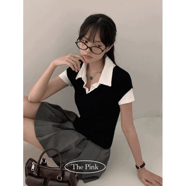 Codibook|韓國 thepink 疊層設計POLO短袖上衣[預購]短袖上衣 polo-shirt 女裝灰色,free|黑色,freeT-shirtsCodibook 韓國女裝購物平台