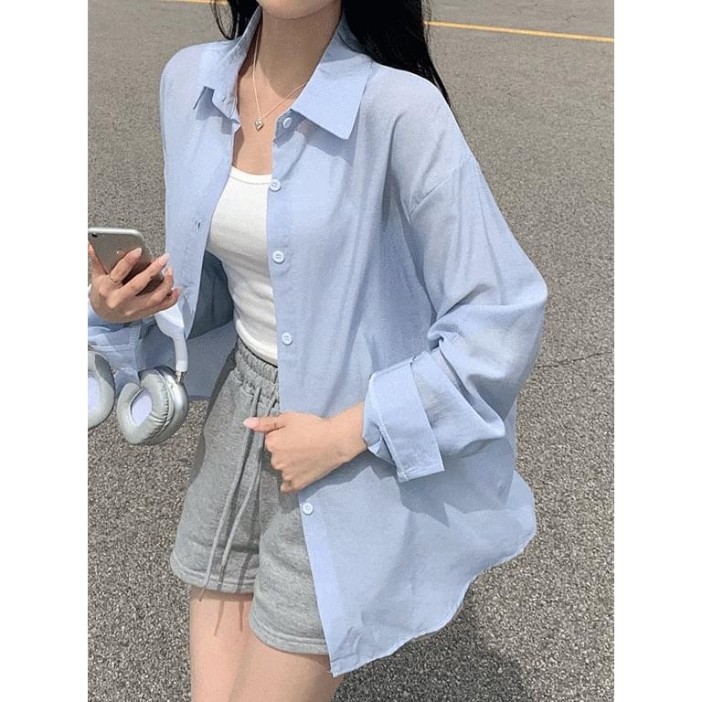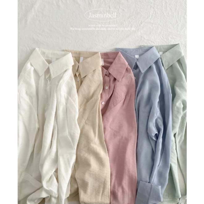 Codibook|韓國 JASMINBELL 輕透感寬鬆落肩亞麻長袖襯衫[預購]襯衫 女裝天空藍,無|粉紅色,無|白色,無|薄荷色,無|淡黃,無Shirts & BlousesCodibook 韓國女裝購物平台