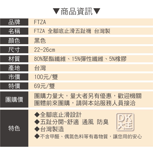 FTZA 全腳底止滑五趾襪 防滑設計 五指襪 台灣製【DK大王】1雙-黑色SocksDK大王旗艦店