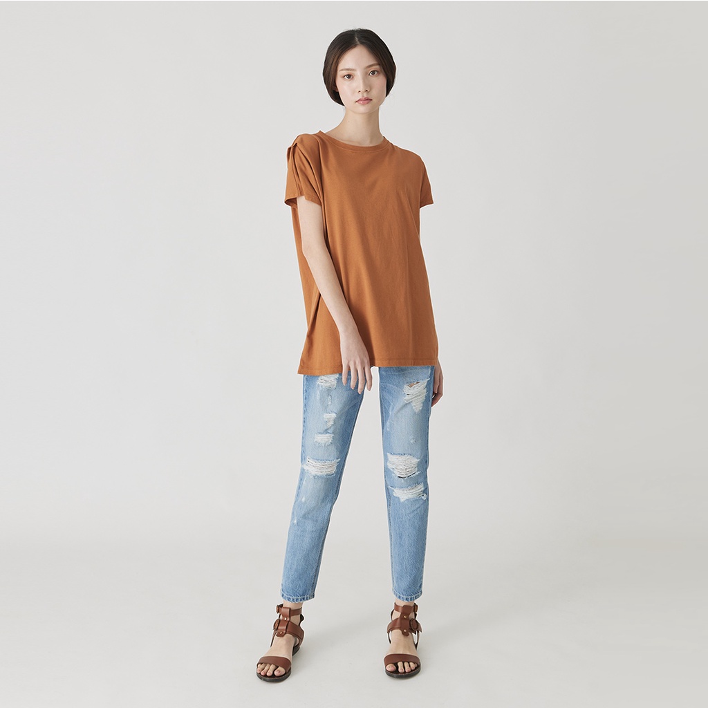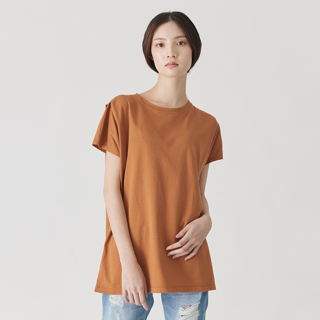 【ERSS】女裝 短袖 女生 t恤 短袖上衣 法式 奶茶系 造型上衣 褐色【K70270】S|M|LT-shirtsE.R.S.S.