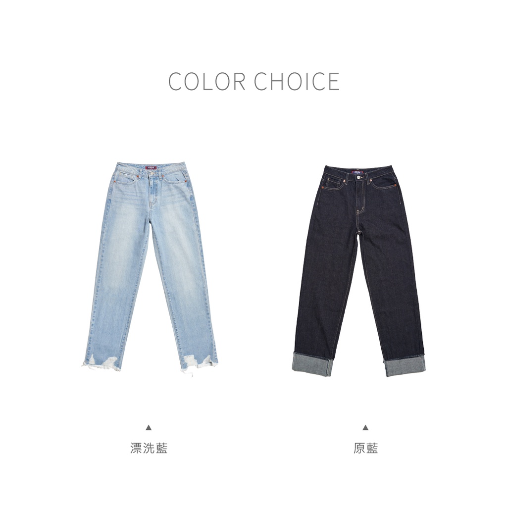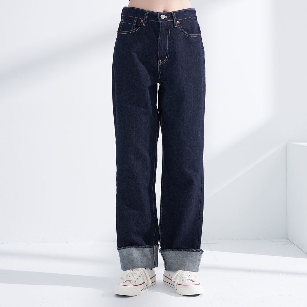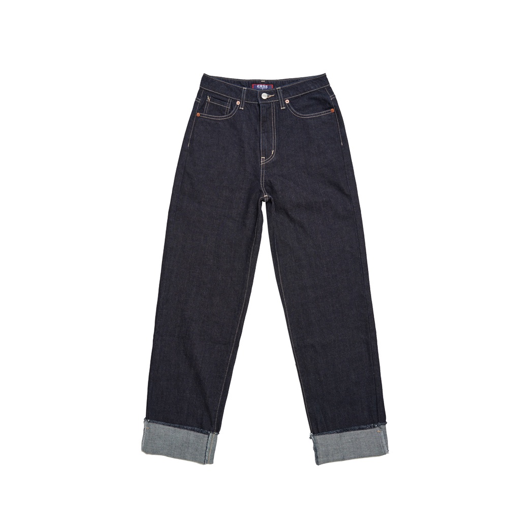 【ERSS】女裝 牛仔褲 長褲 寬褲 寬直筒 女長褲 直筒褲 反摺 刷色 水洗 純棉 原藍【S17053】S|M|L|XL|3LE.R.S.S.