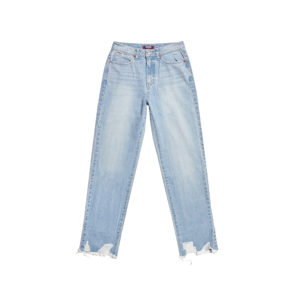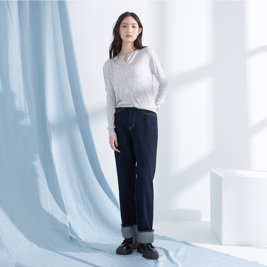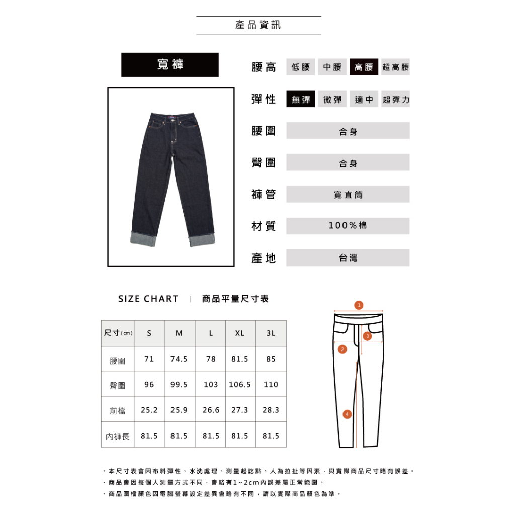 【ERSS】女裝 牛仔褲 長褲 寬褲 寬直筒 女長褲 直筒褲 反摺 刷色 水洗 純棉 原藍【S17053】S|M|L|XL|3LE.R.S.S.
