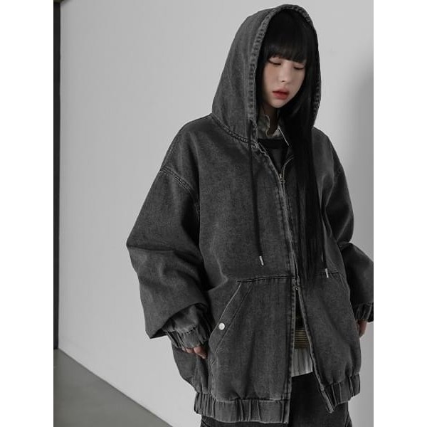 Codibook|韓國 binary01 寬鬆雙用丹寧連帽拉鍊外套[預購]拉鍊外套 連帽上衣 女裝深藍色(丹寧藍),FREE|黑丹寧(Black Denim),FREEJacketsCodibook 韓國女裝購物平台