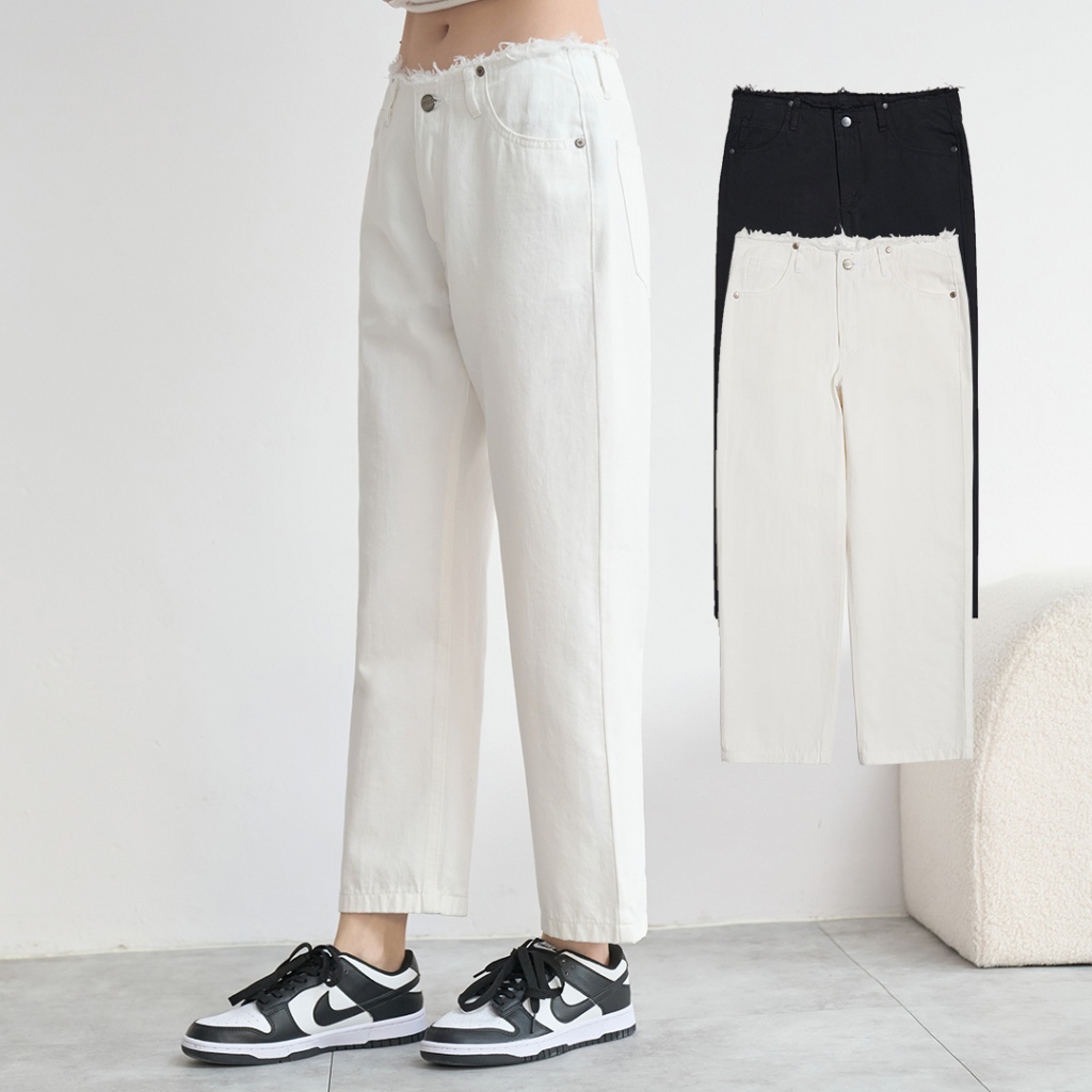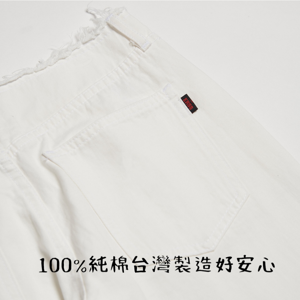 【ERSS】 女裝 牛仔褲 九分褲 牛仔寬褲 腰頭抽鬚 白色 【S37050】S|M|L|XL|3LPantsE.R.S.S.