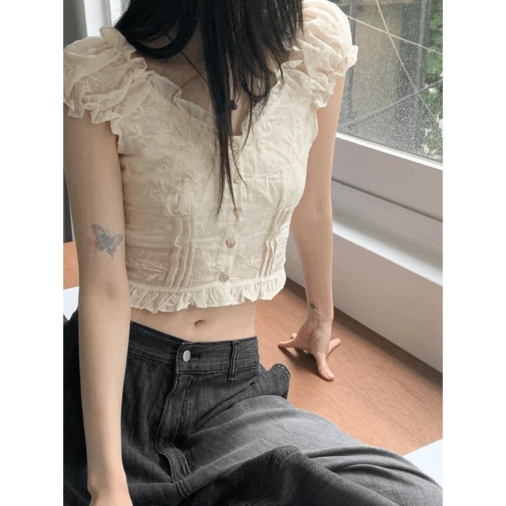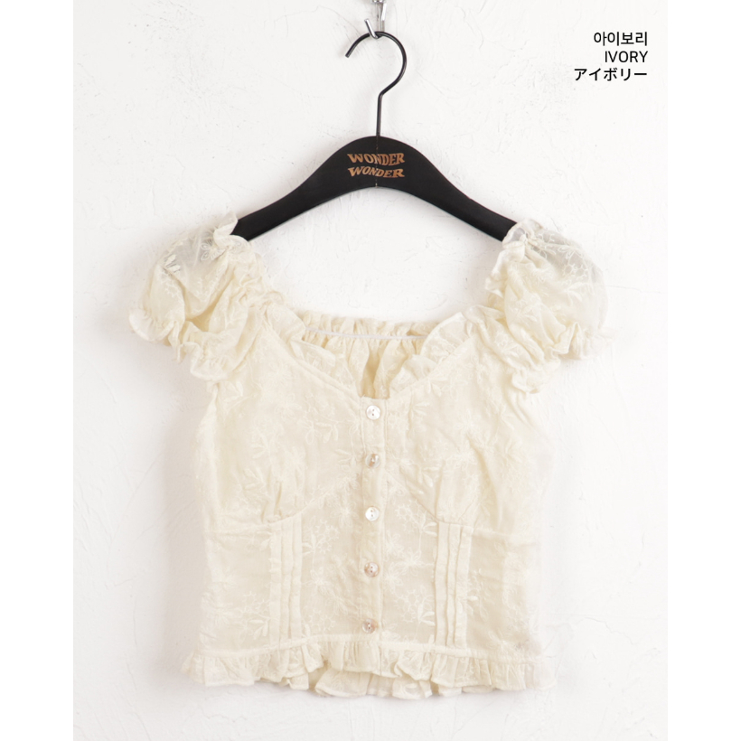 Codibook|韓國 wonderwonder 鏤空荷葉邊V領無袖短版上衣[預購]雪紡襯衫 女裝象牙白,FREEShirts & BlousesCodibook 韓國女裝購物平台