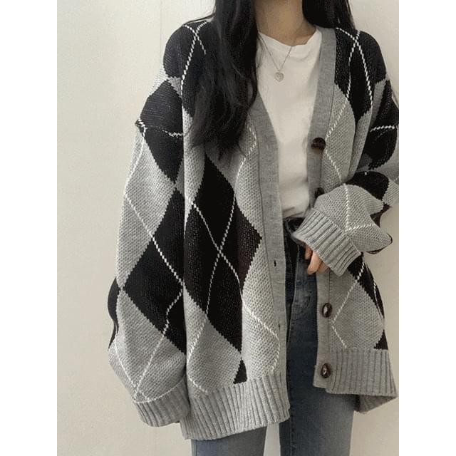 Codibook|韓國 HIJJOO 菱格紋寬鬆長版針織外套[預購]針織外套 女裝灰色|咖啡色|天空藍|奶油色Winter Jackets & CoatsCodibook 韓國女裝購物平台