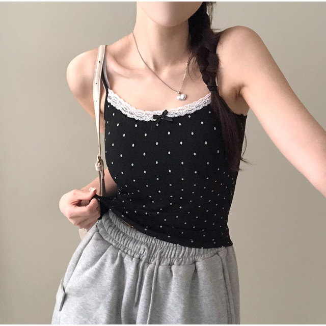 Codibook|韓國 gifteabox 點點蕾絲緞帶U領無袖上衣(附胸墊)[預購]無袖 T恤 女裝灰色,FREE|白色,FREE|黑色,FREETanks & CamisolesCodibook 韓國女裝購物平台