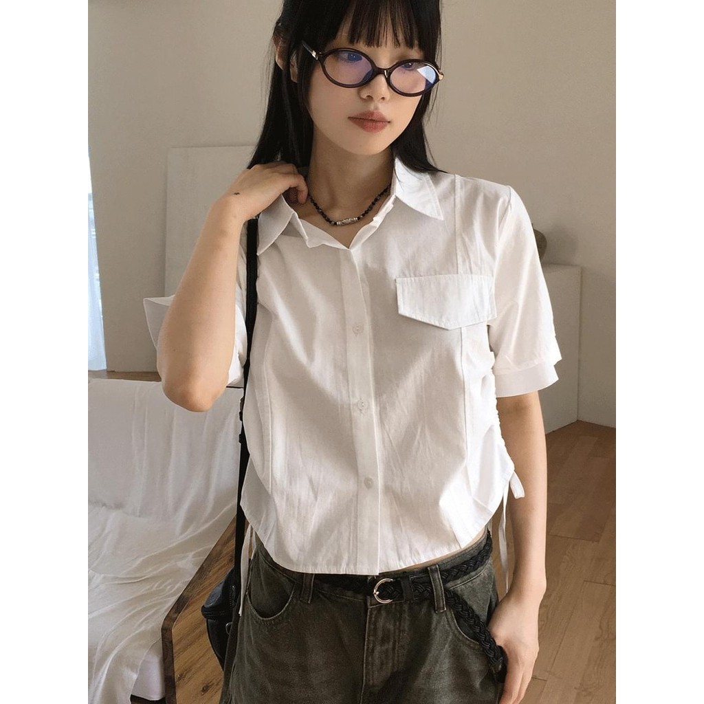 Codibook|韓國 wonderwonder 側邊抽皺口袋設計短版短袖襯衫[預購]襯衫 女裝象牙白,FREE|粉紅色,FREE|天空藍,FREEShirts & BlousesCodibook 韓國女裝購物平台