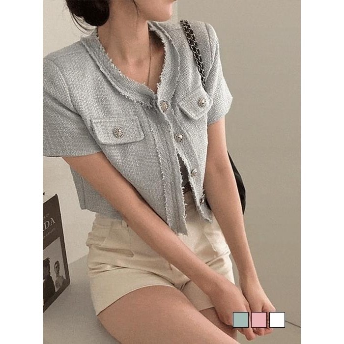 Codibook|韓國 gifteabox 麻花編織V領短版短袖外套[預購]夾克 女裝薄荷色,Free|粉紅色,Free|象牙白,FreeJacketsCodibook 韓國女裝購物平台