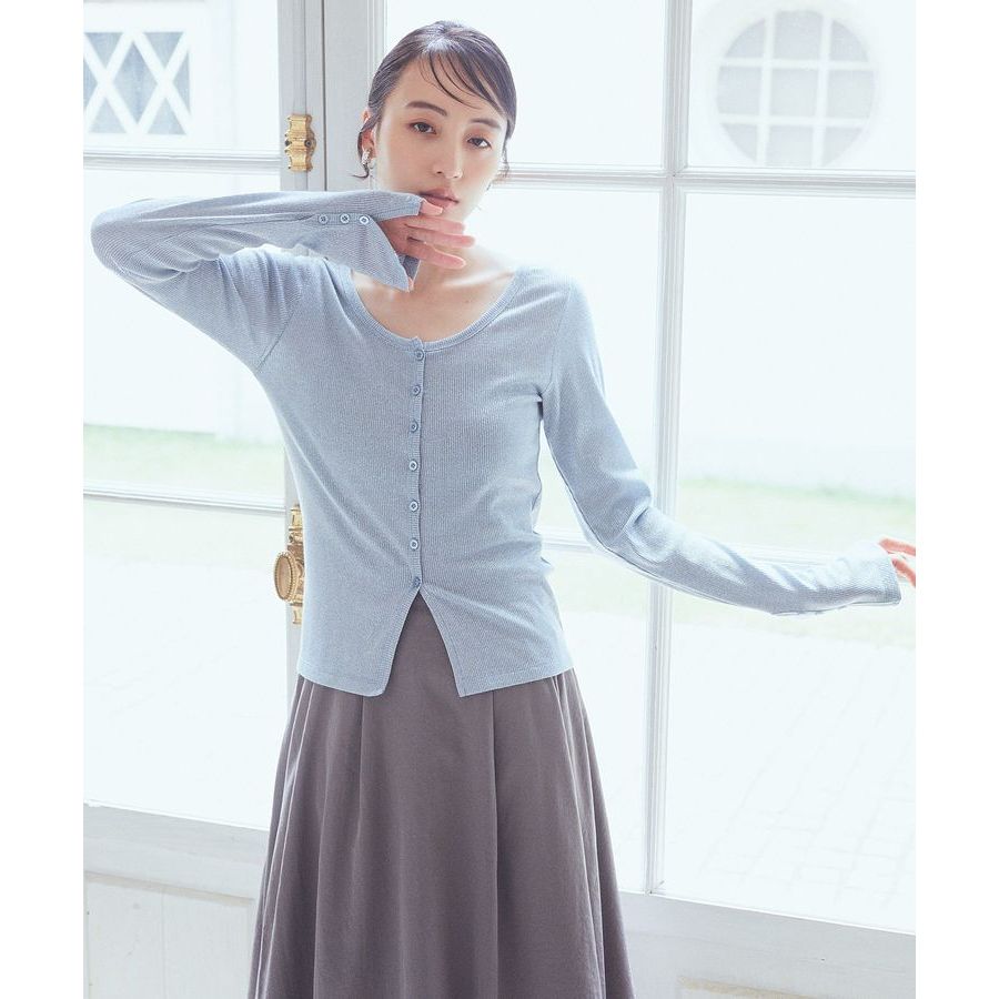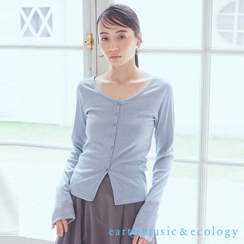 earth music&ecology 光澤金蔥混紡羅紋圓領開襟罩衫(1M43L1D0100)象牙色F|淡灰色F|棕色F|淡青色FCapesearth music&ecology Select Store