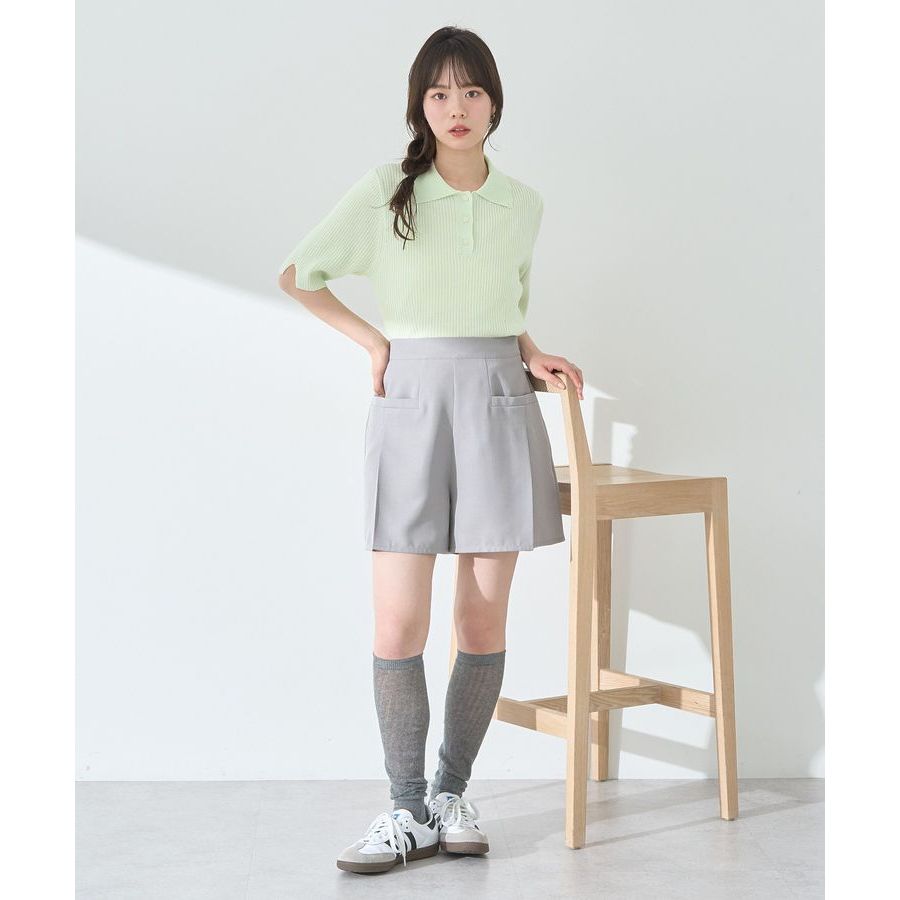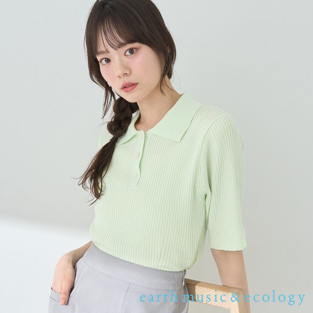 earth music&ecology 細羅紋彈性五分袖POLO衫(01000434200)象牙色F|淡灰色F|黑色F|紅色F|薄荷綠FPolo Shirtsearth music&ecology Select Store