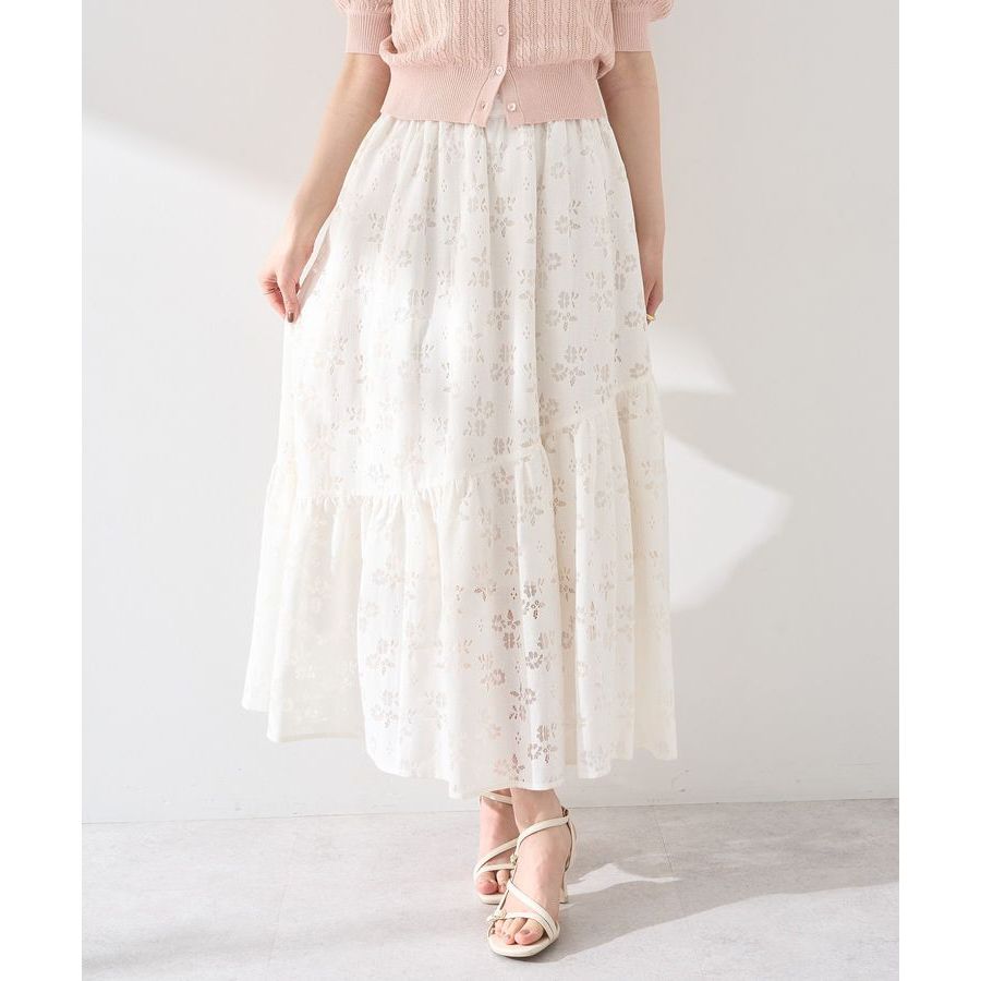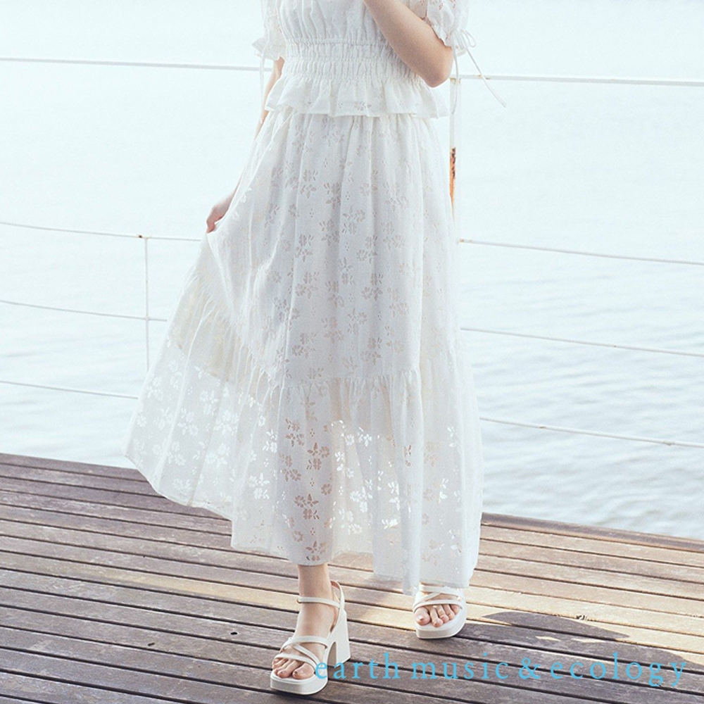 earth music&ecology 鏤空花卉分層式ALINE喇叭長裙(01000328800)象牙色F|黑色Fearth music&ecology Select Store