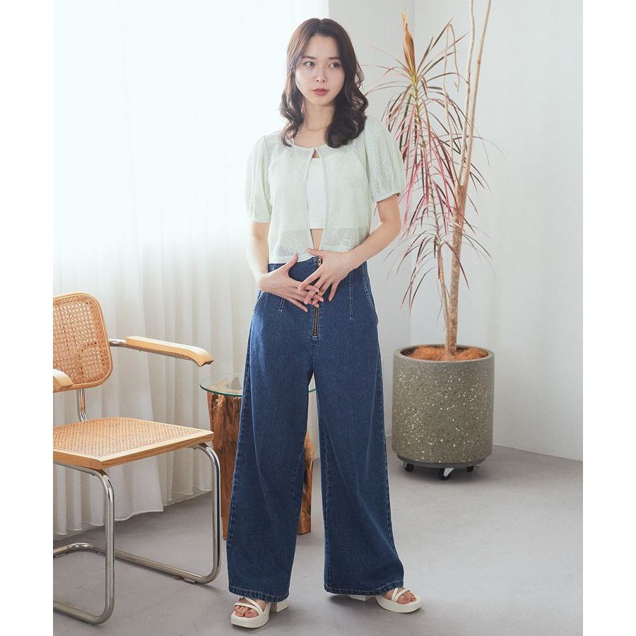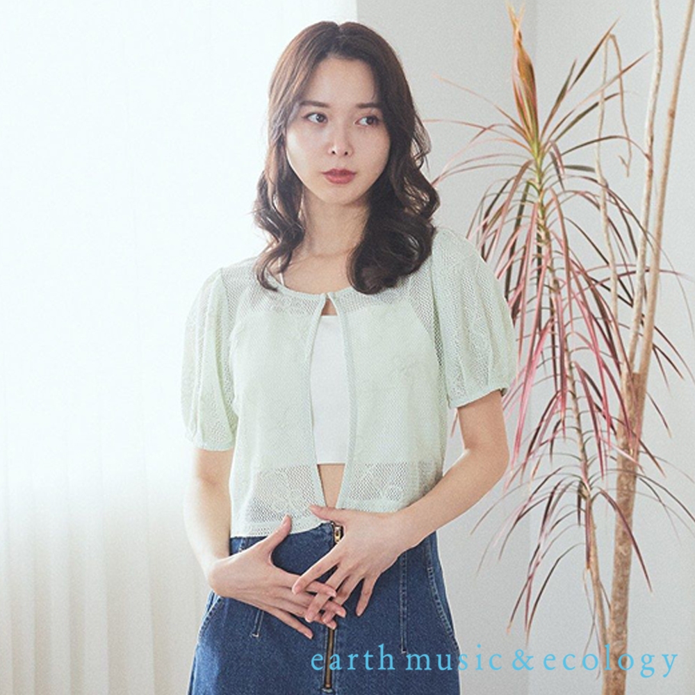 earth music&ecology 鏤空鉤花刺繡泡泡袖開襟罩衫上衣(01000523800)象牙色F|黑色F|粉紅色F|薄荷綠FOthersearth music&ecology Select Store