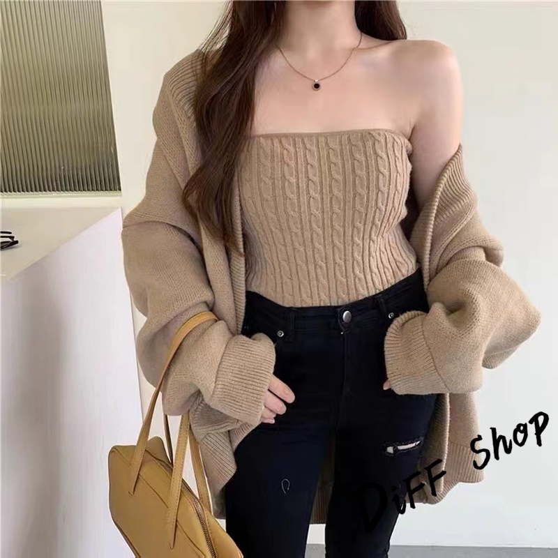 【DIFF】韓版溫柔風針織外套+麻花針織背心 毛衣 針織上衣 長版外套 女裝 衣服 上衣 保暖外套 保暖上衣【J248】【J248】奶茶色|【J248】米白|【J248】黑色Individual SetsDiFF shop