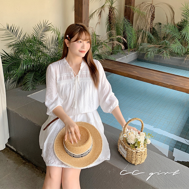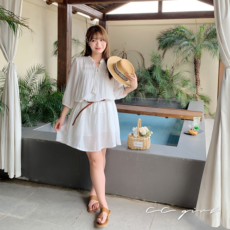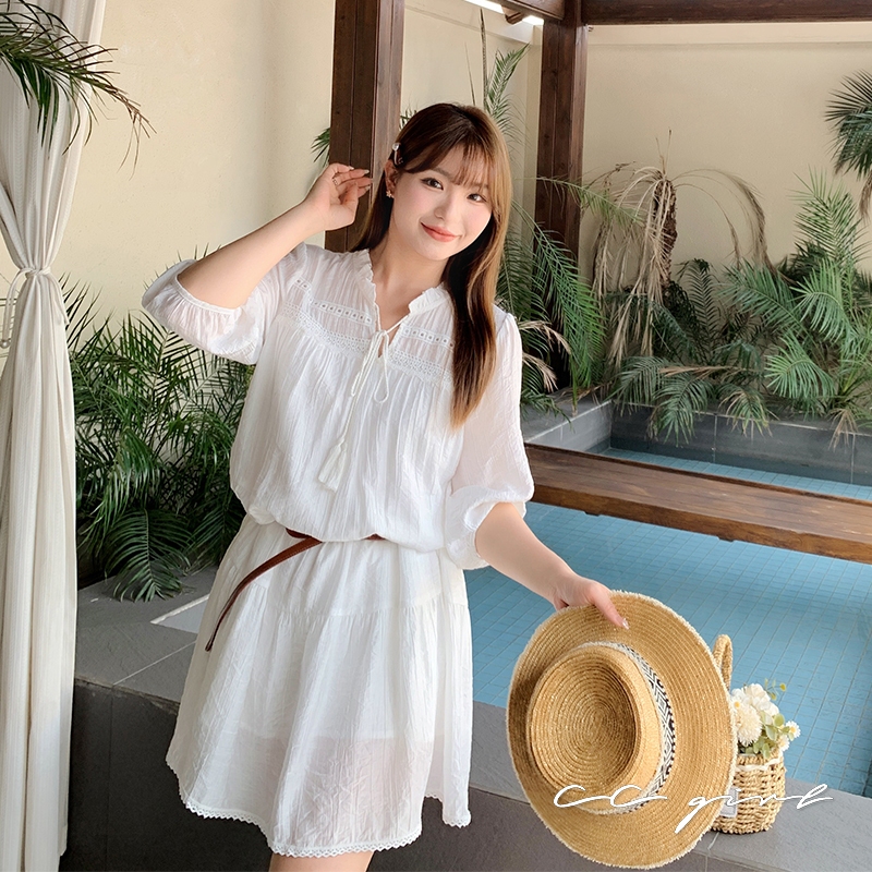 CCGIRL中大尺碼 浪漫微甜若隱若現鏤空微透感蕾絲花邊領流蘇繫帶洋裝-適L~5L《32178》大尺碼女裝 中大尺碼洋裝不包含皮帶-L(建議L和XL適穿)|不包含皮帶 -XL(建議2L和3L適穿)|不包含皮帶-2L(建議3L和4L適穿)|不包含皮帶 -3L(建議4L和5L適穿)CCGIRL中大尺碼女裝