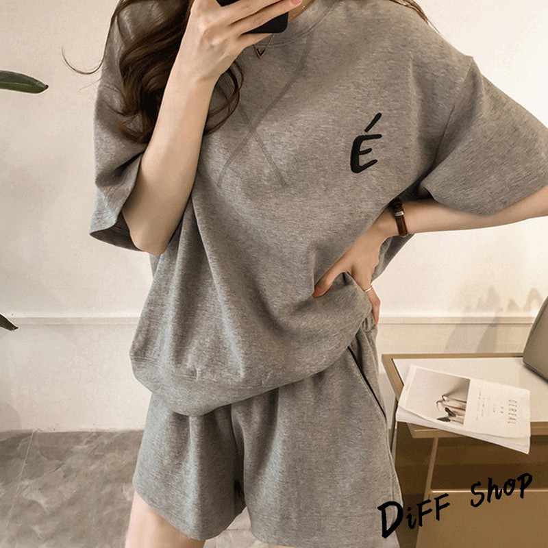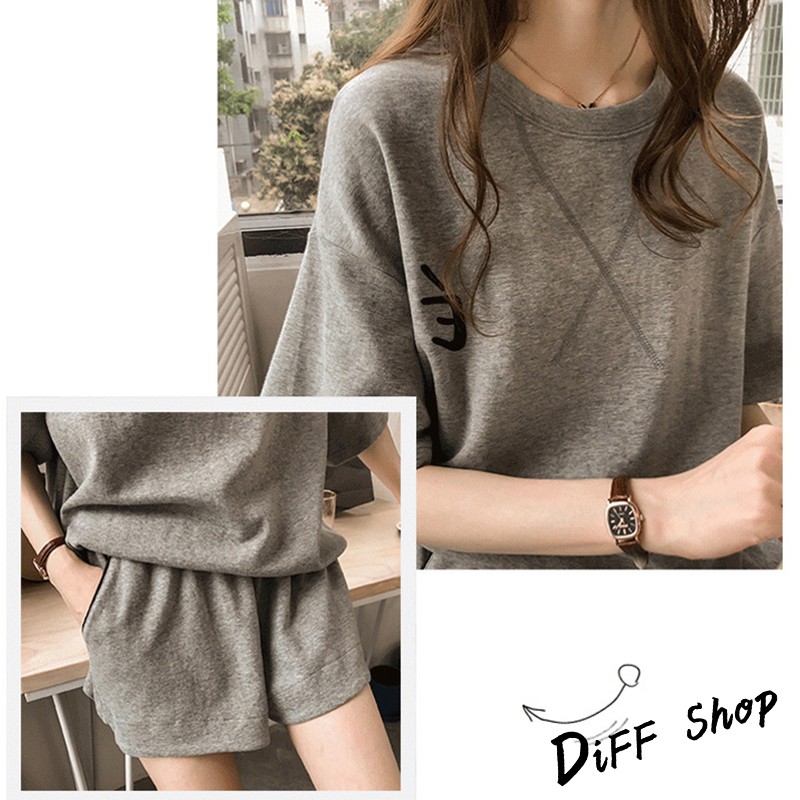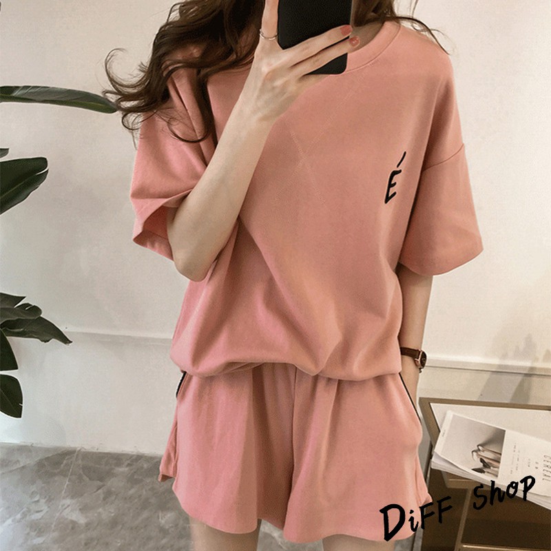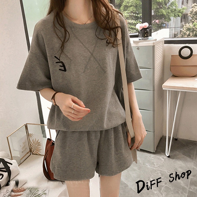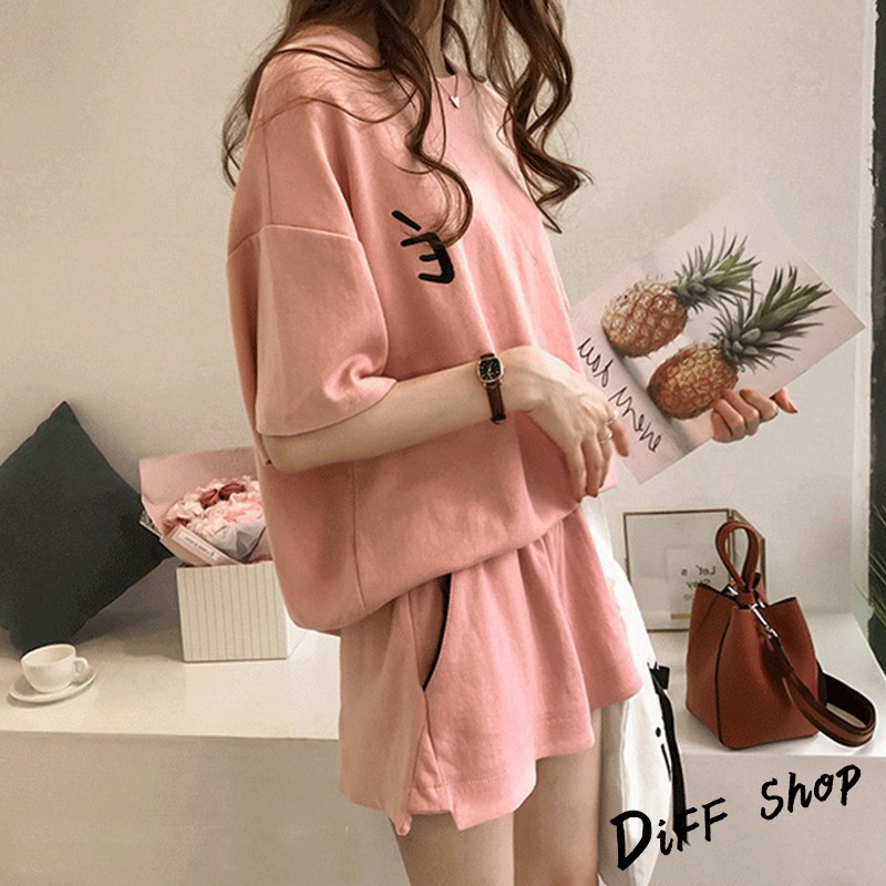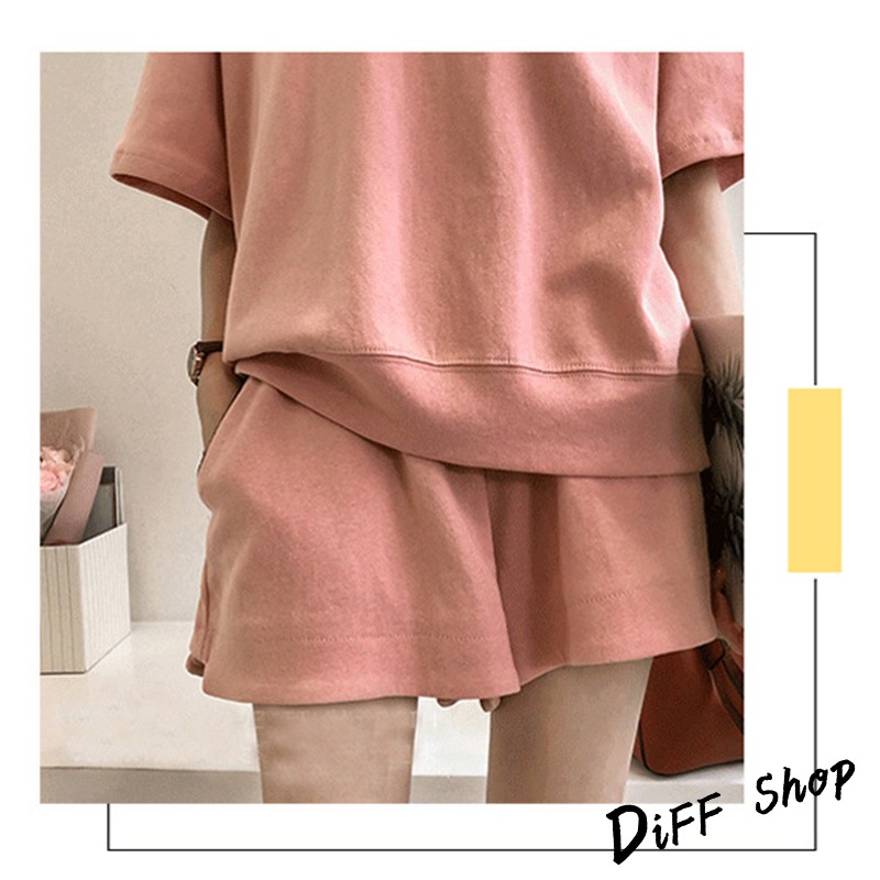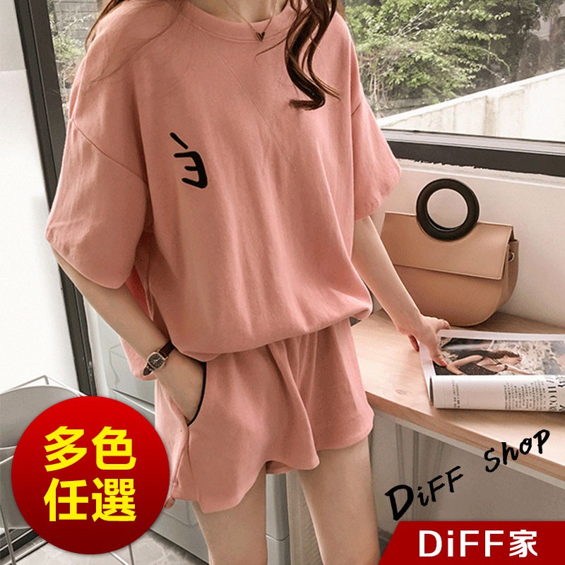 【DIFF】韓版寬鬆素色休閒運動套裝 短袖上衣+短褲 短袖t恤 女裝 顯瘦上衣 衣服 寬鬆上衣 素T 睡衣 【S65】【S65】紅色|【S65】灰色|【S65】粉色Individual SetsDiFF shop