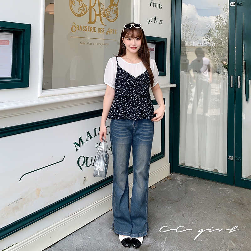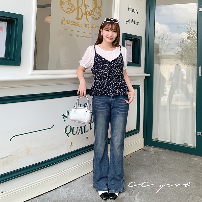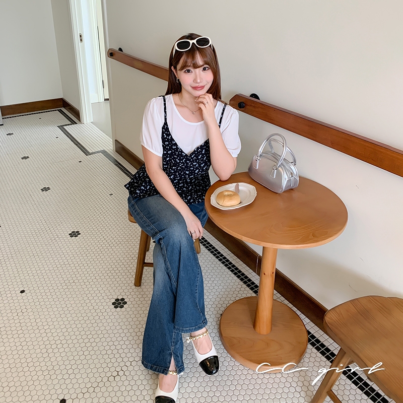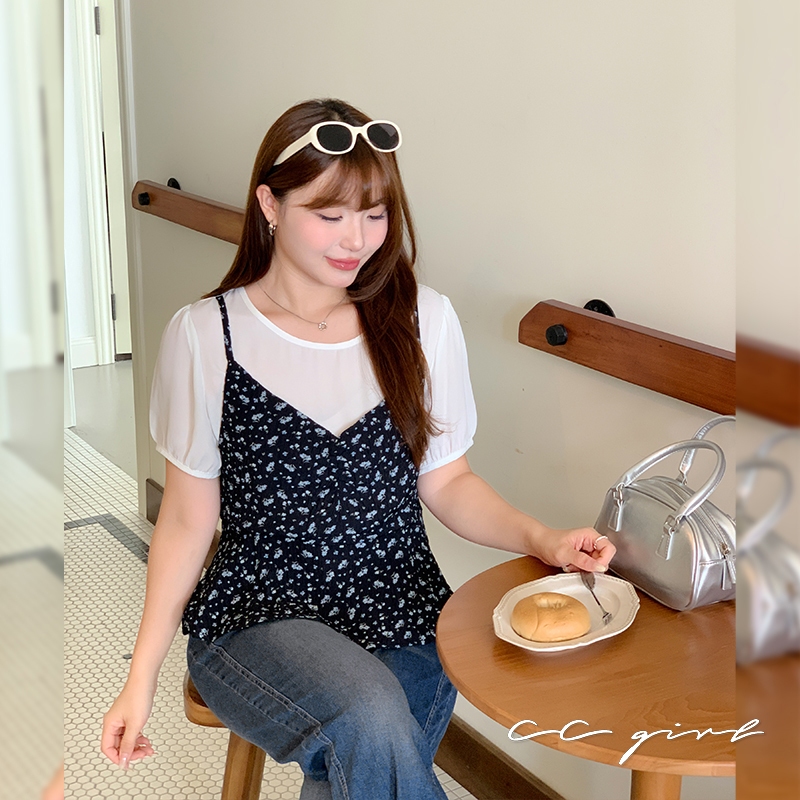 CCGIRL中大尺碼 黑底藍碎花拼接假兩件公主袖上衣-適L~5L《31466/32265》大尺碼女裝 中大尺碼上衣32265-黑底藍碎花(新色),L|32265-黑底藍碎花(新色),XL|32265-黑底藍碎花(新色),2L|32265-黑底藍碎花(新色),3L|32265-黑底藍碎花(新色),4L|32265-黑底藍碎花(新色),5LT-shirtsCCGIRL中大尺碼女裝