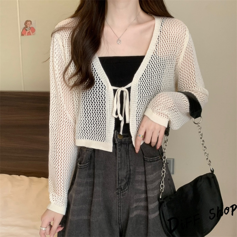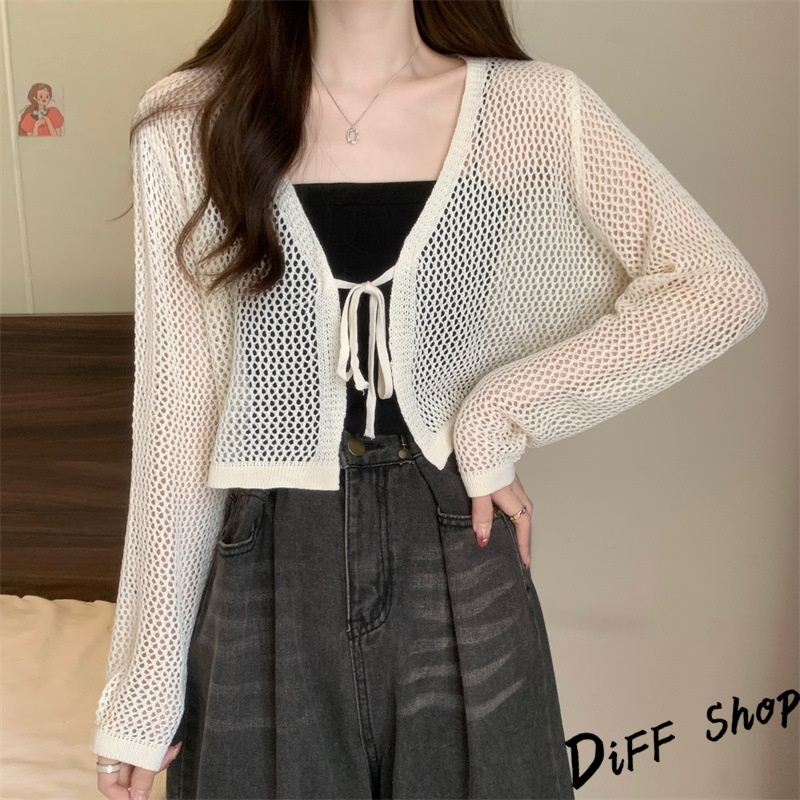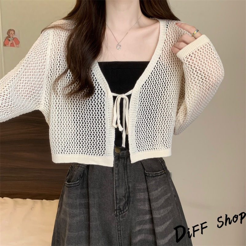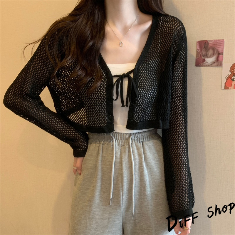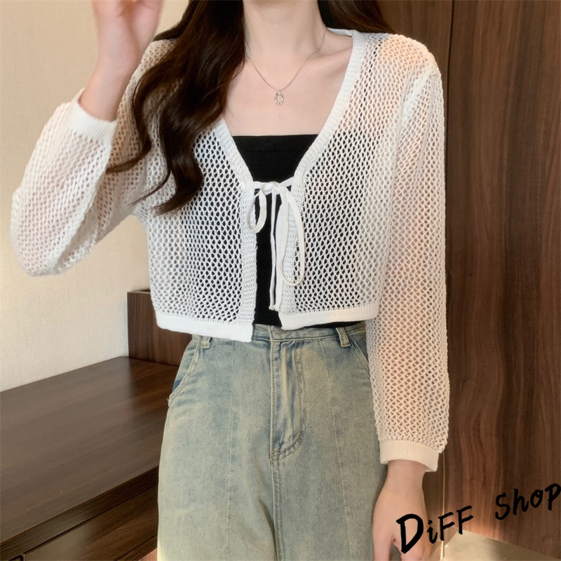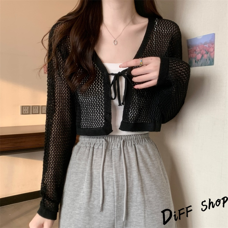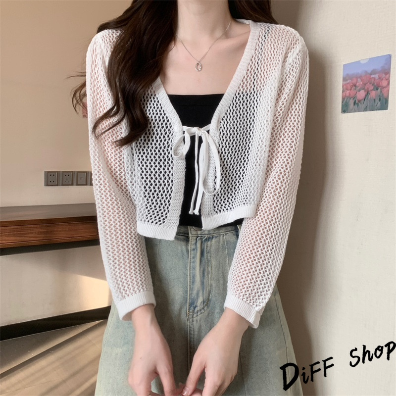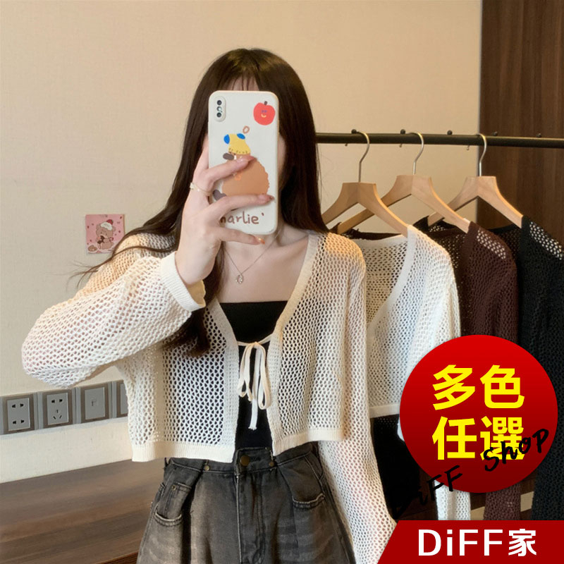 【DIFF】韓版法式薄款網洞V領針織外套 短版外套 上衣 女裝 衣服 外套 長袖上衣 薄外套 罩衫 防曬外套【J281】【J281】黑色|【J281】白色|【J281】杏色DiFF shop
