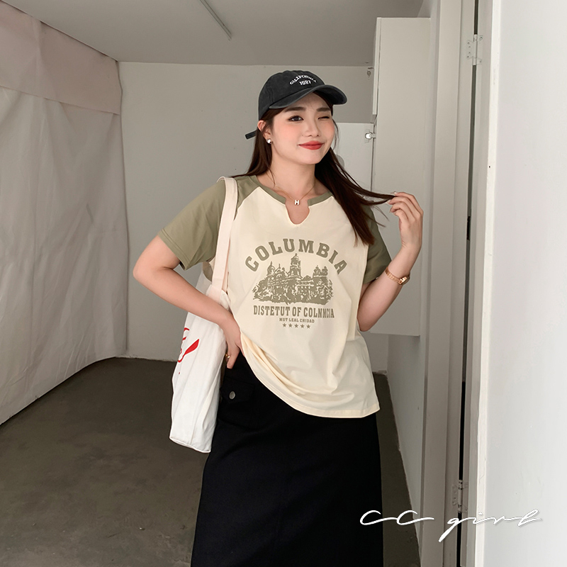 CCGIRL中大尺碼 悠閒印花字母撞色拼接短袖上衣-共2色-適M~5L《 31718 》大尺碼女裝 中大尺碼上衣杏配綠袖(售完斷貨),L|灰配藍袖(售完斷貨),3L|灰配藍袖(售完斷貨),4L|灰配藍袖(售完斷貨),2L|杏配綠袖(售完斷貨),XL|杏配綠袖(售完斷貨),2L|杏配綠袖(售完斷貨),3L|杏配綠袖(售完斷貨),4L|杏配綠袖(售完斷貨),5L|灰配藍袖(售完斷貨),L|灰配藍袖(售完斷貨),XL|灰配藍袖(售完斷貨),5L|杏配綠袖(售完斷貨),M(新上市)|灰配藍袖(售完斷貨),M(新上市)T-shirtsCCGIRL中大尺碼女裝