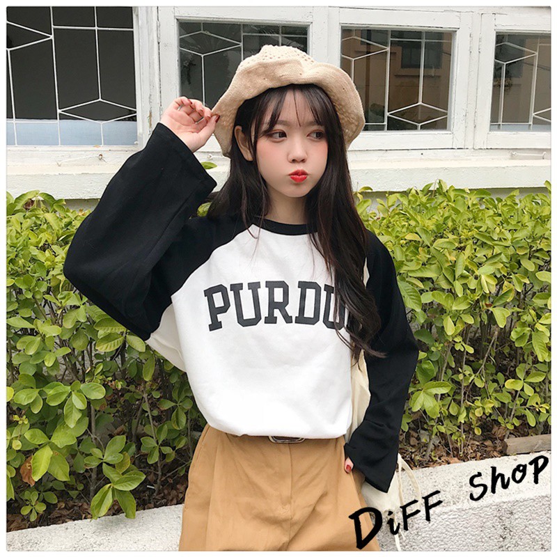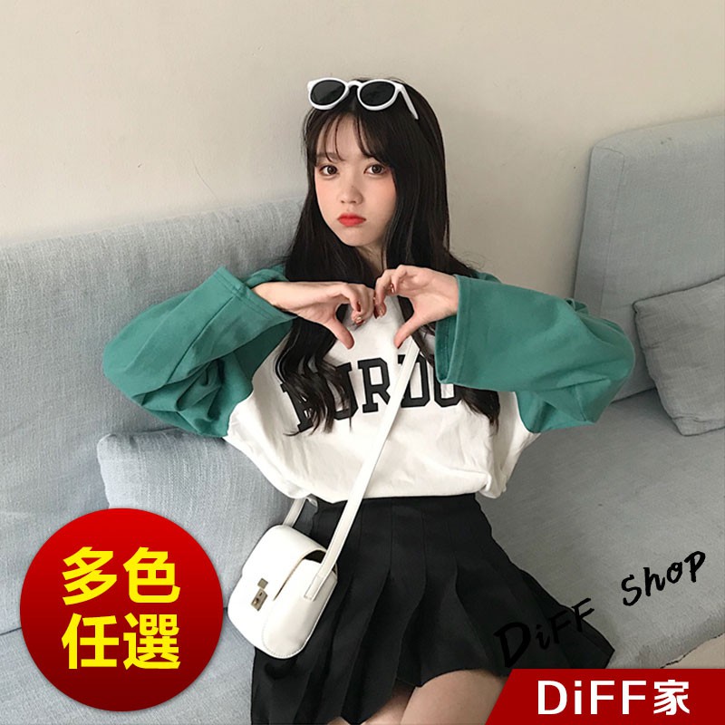 【DIFF】韓版薄款撞色系寬鬆長袖上衣 長袖t恤 女裝 衣服 寬鬆上衣 素T 素色 顯瘦上衣【W106】【W106】黑色|【W106】綠色|【W106】卡其T-shirtsDiFF shop