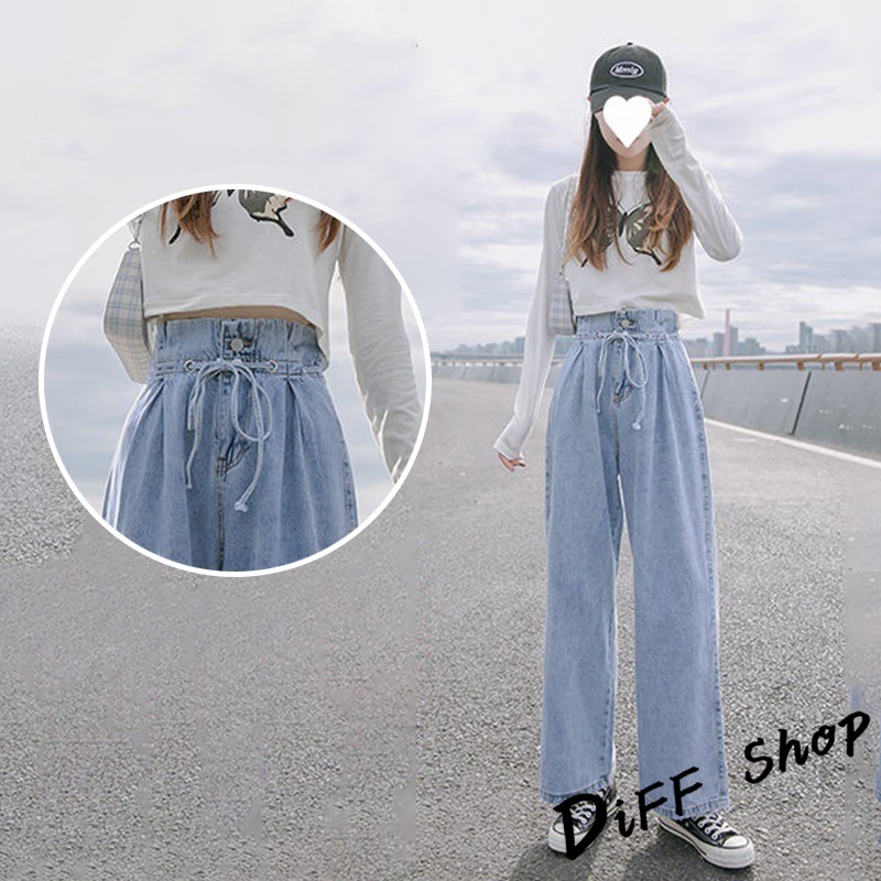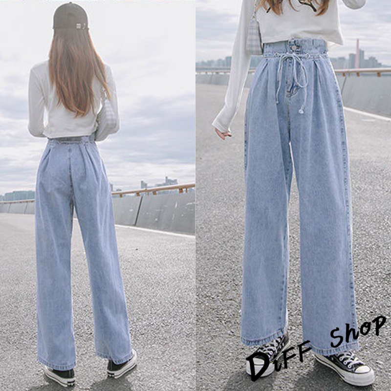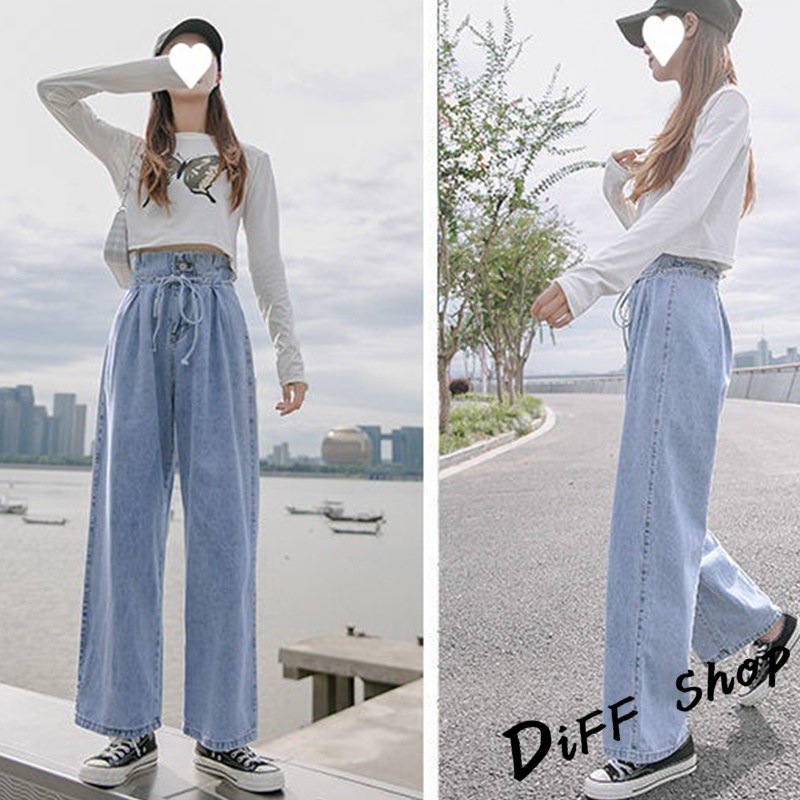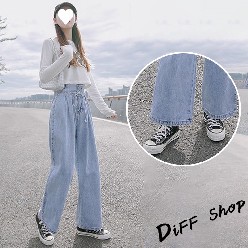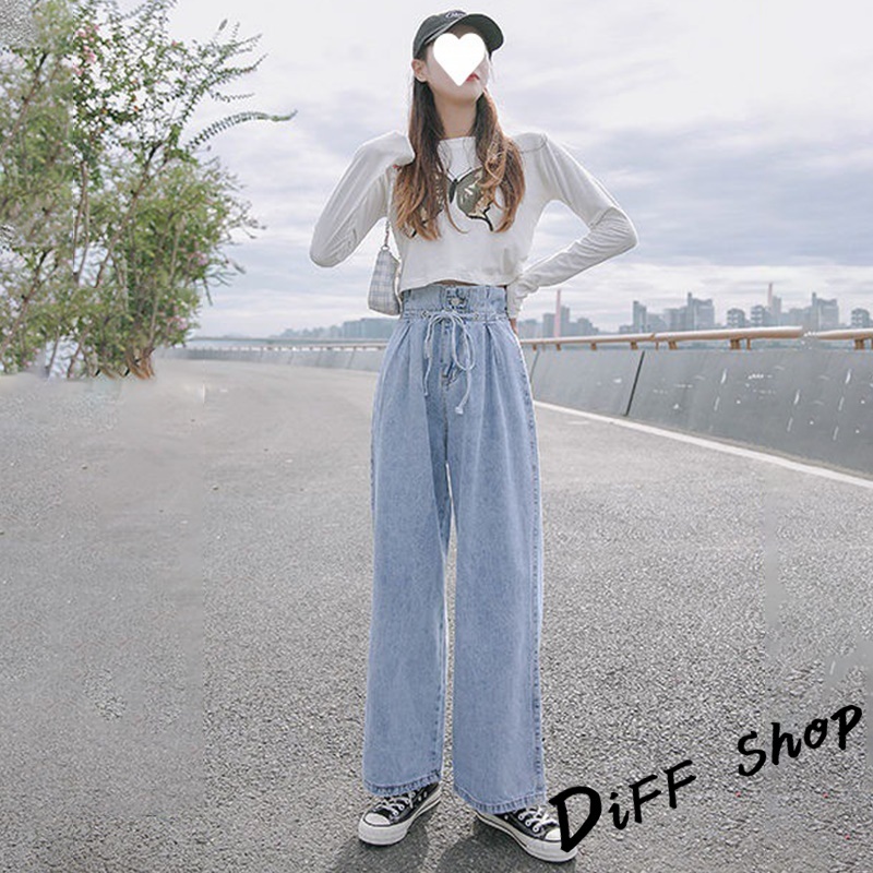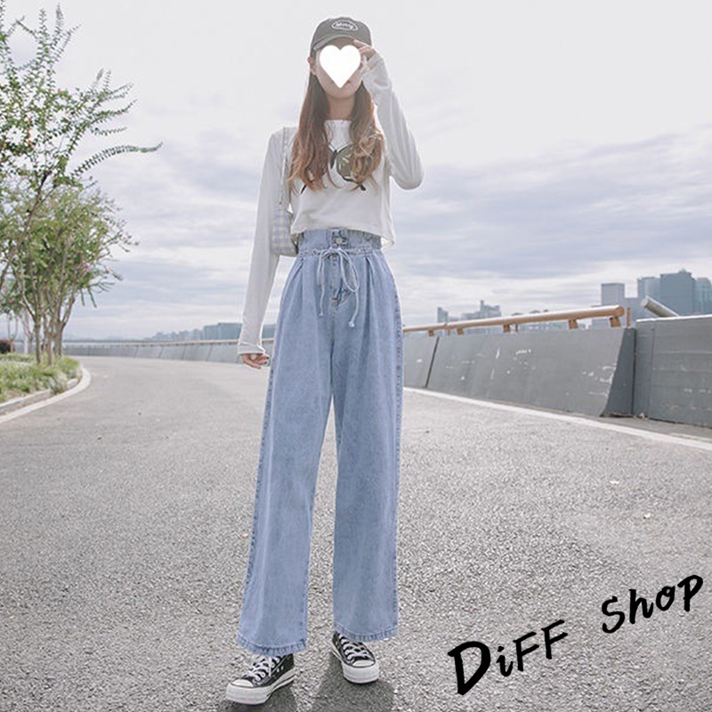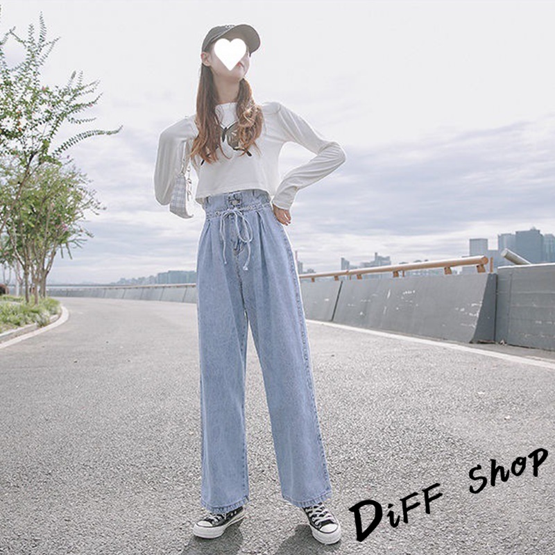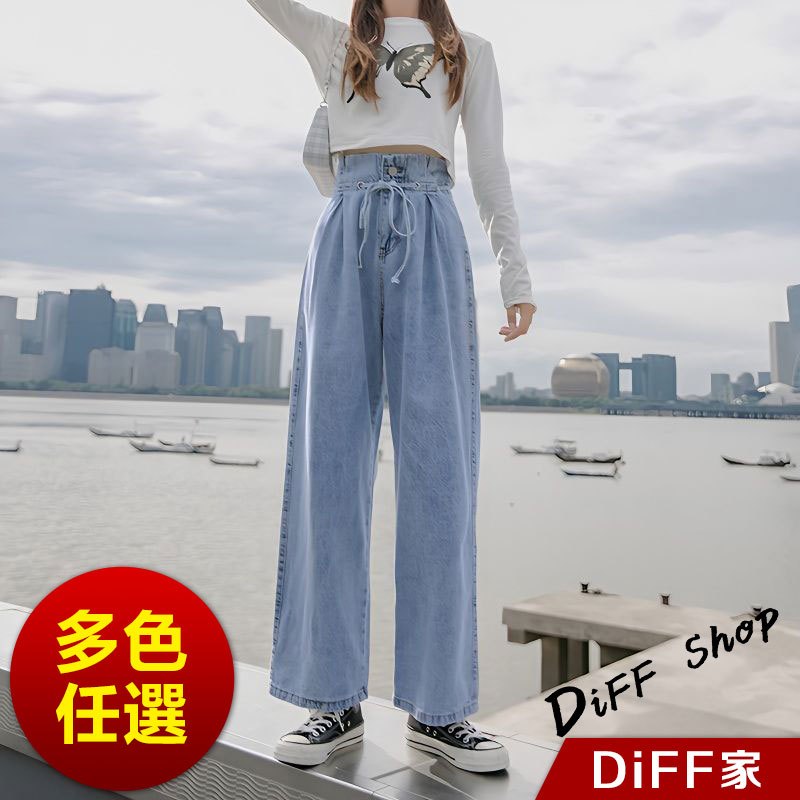 【DIFF】韓版高腰寬鬆顯瘦直筒垂墜感拖地褲 寬褲 褲子 長褲 休閒褲 女裝 高腰褲 牛仔褲【P110】【P110】S號|【P110】M號|【P110】L號|【P110】XL號DiFF shop