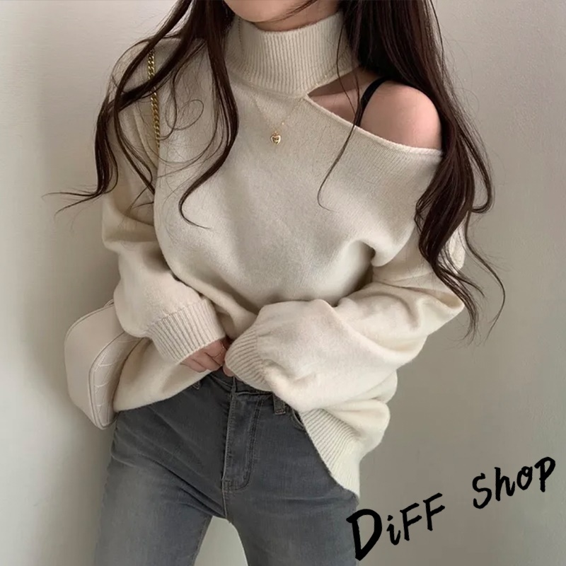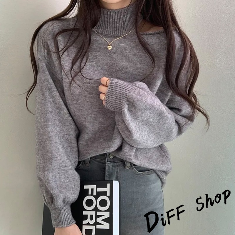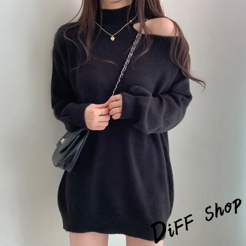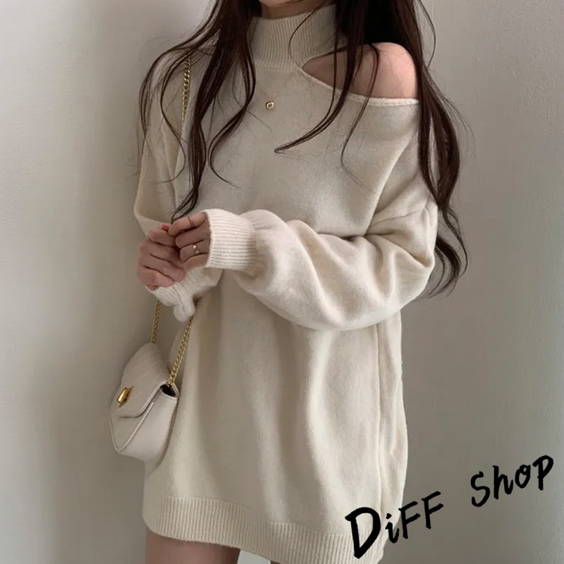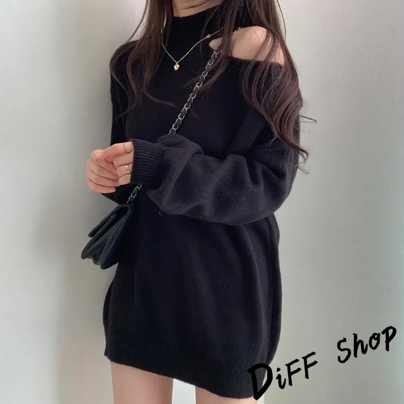 【DIFF】韓系氣質露肩針織上衣 毛衣 長袖上衣 女裝 衣服 寬鬆上衣 顯瘦上衣下半身失蹤 連衣裙【W325】【W325】灰色|【W325】黑色|【W325】白色|【W325】卡其DiFF shop