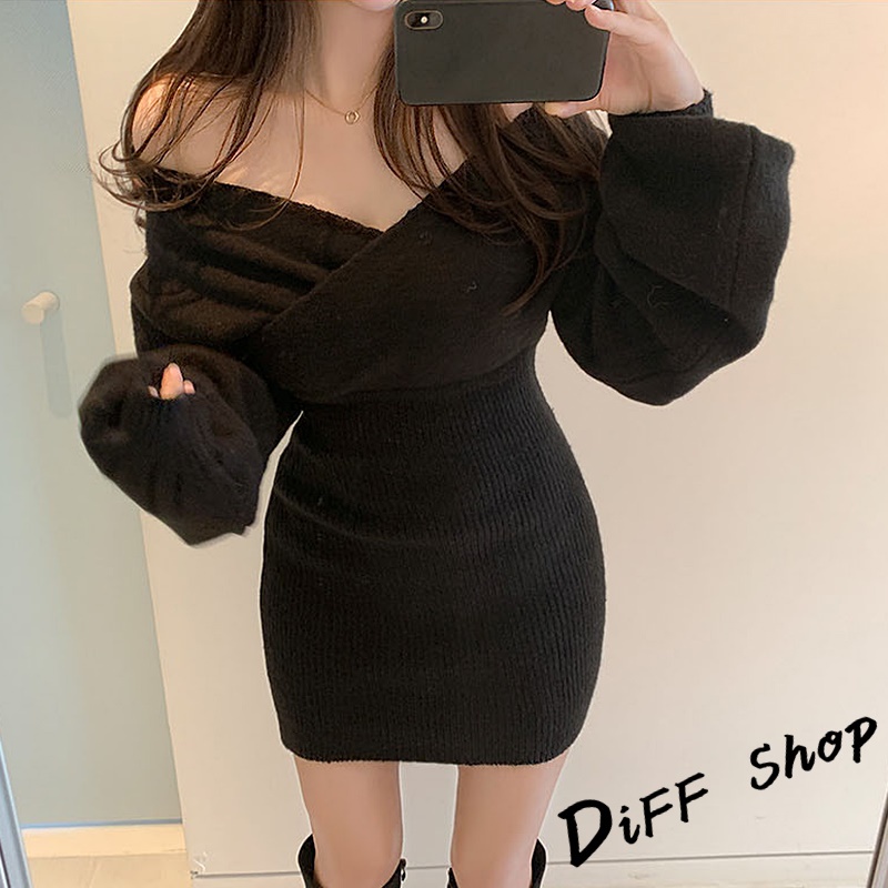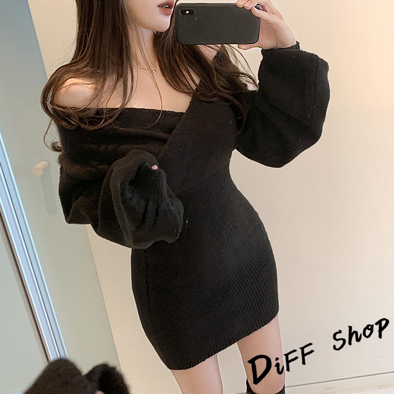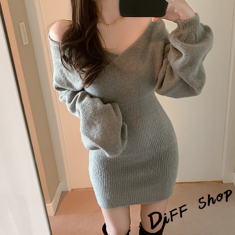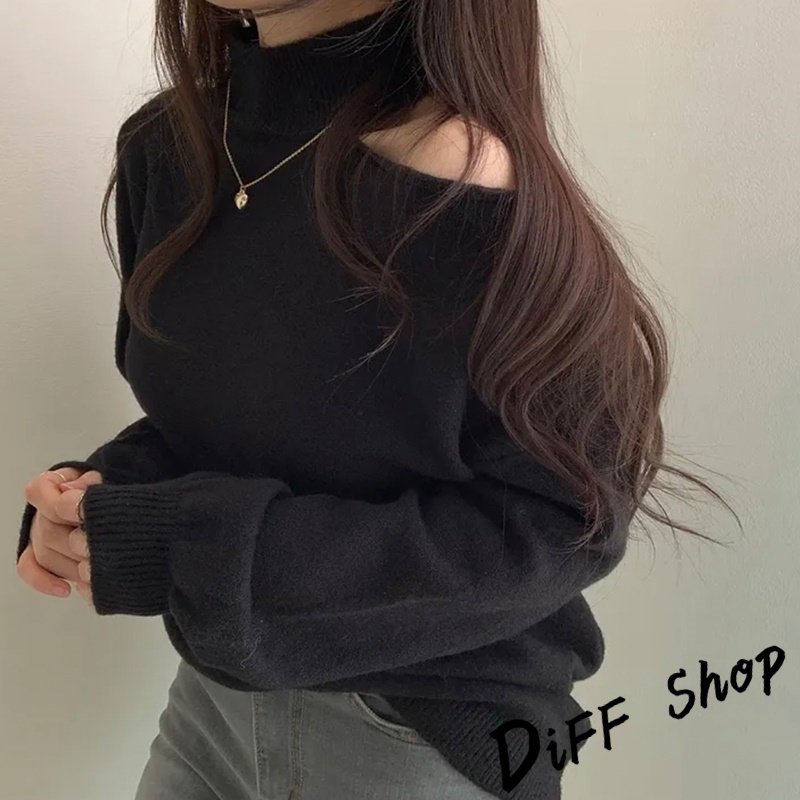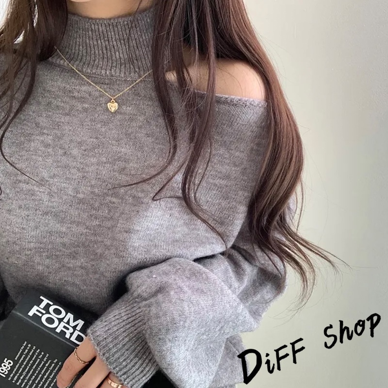 【DIFF】韓系氣質露肩針織上衣 毛衣 長袖上衣 女裝 衣服 寬鬆上衣 顯瘦上衣下半身失蹤 連衣裙【W325】【W325】灰色|【W325】黑色|【W325】白色|【W325】卡其DiFF shop