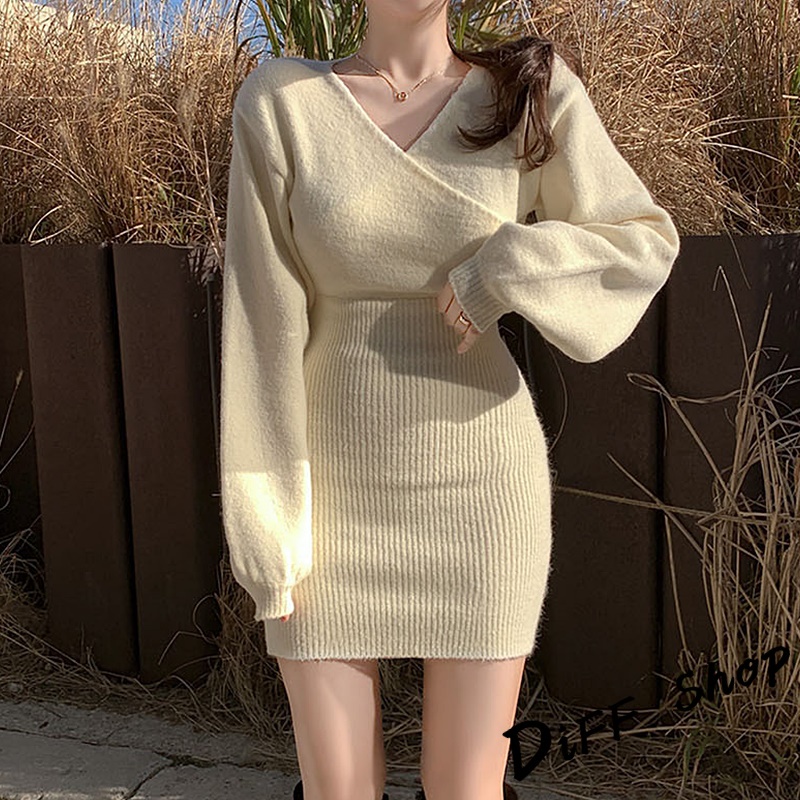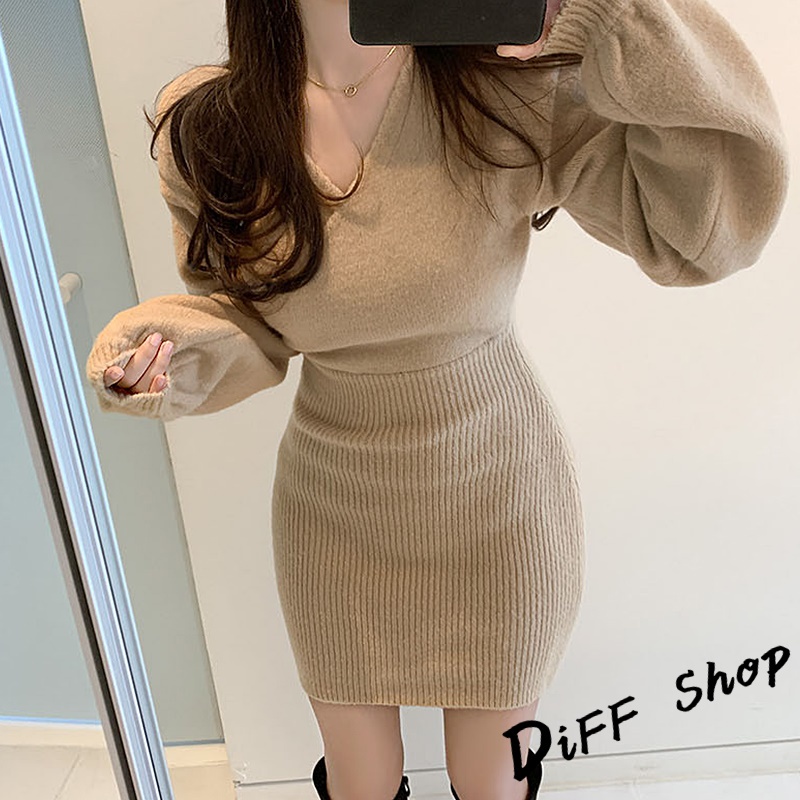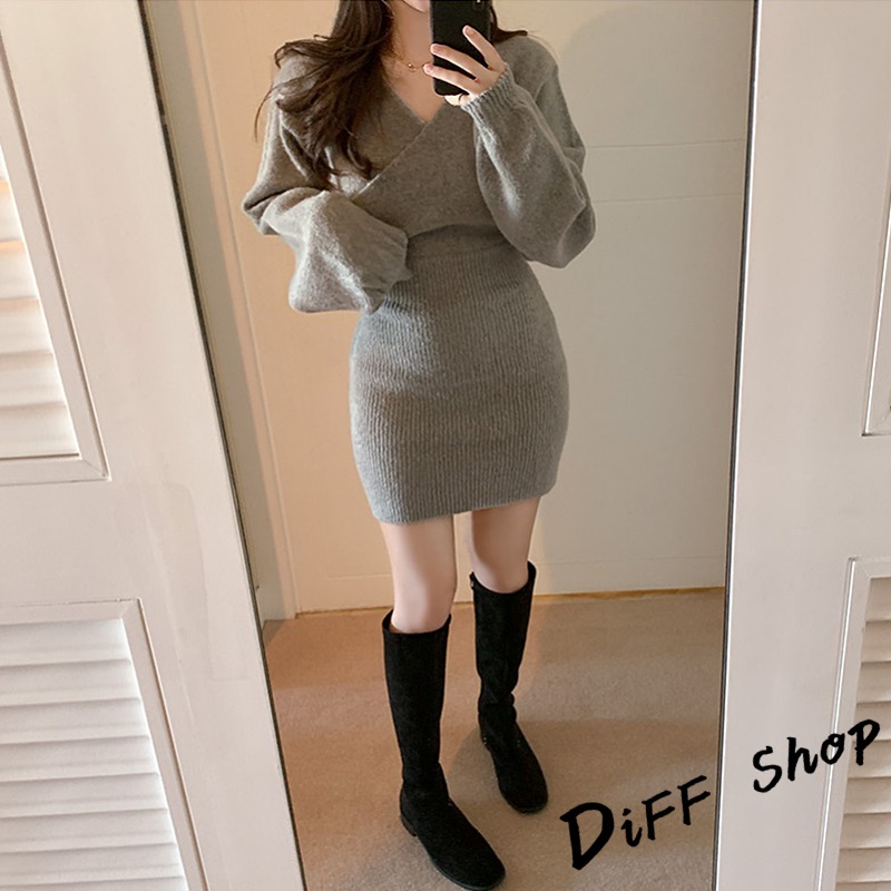 【DIFF】韓版氣質V領溫柔風交叉洋裝 針織上衣 連衣裙 連身裙 套裝 女裝 衣服 長袖上衣 【S230】【S230】灰色|【S230】白色|【S230】黑色|【S230】卡其DiFF shop
