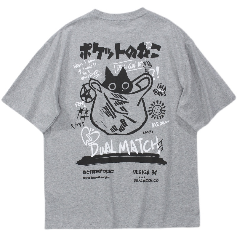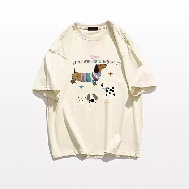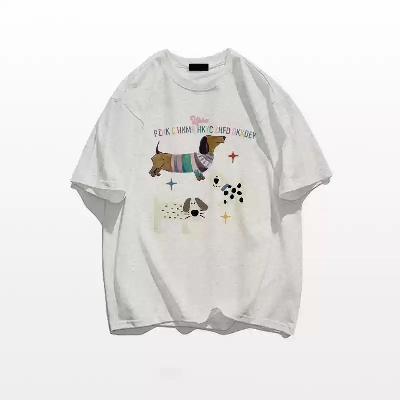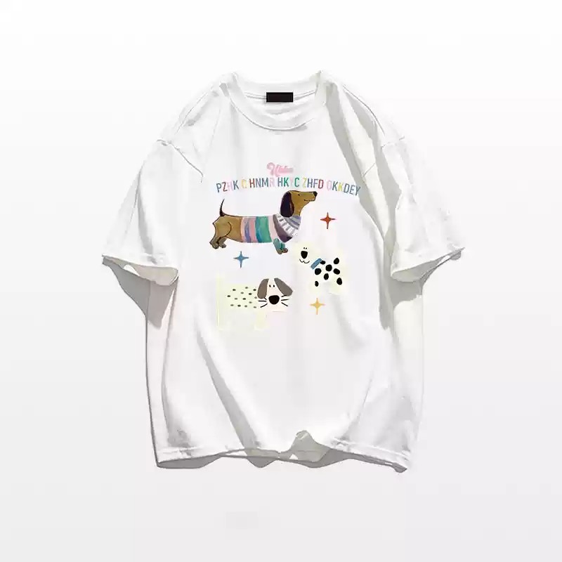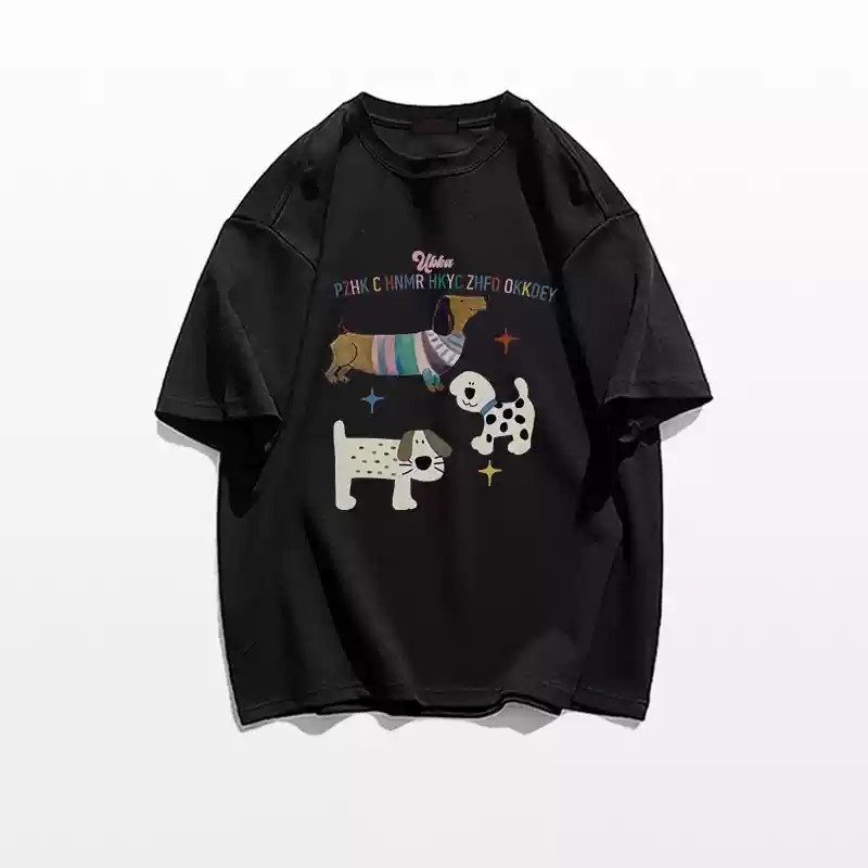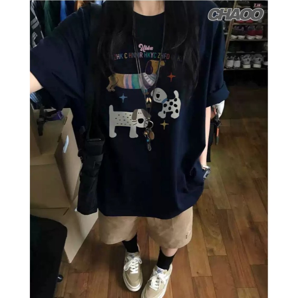 CHAOO 短袖 短袖t恤 上衣短袖 oversize 短t 白色上衣 印花 t恤 黑色衣服 oversize 短袖女