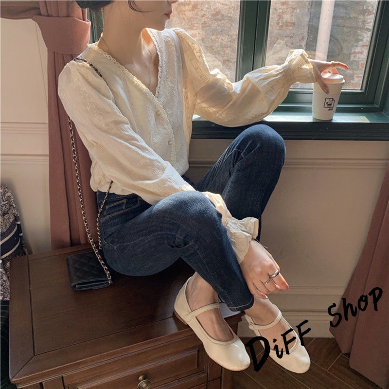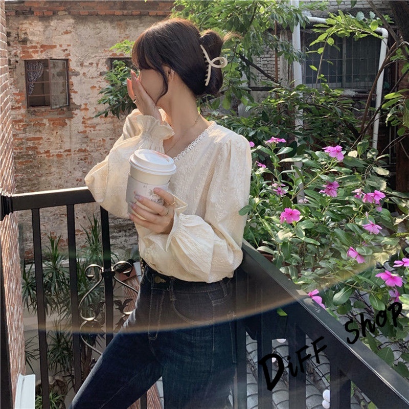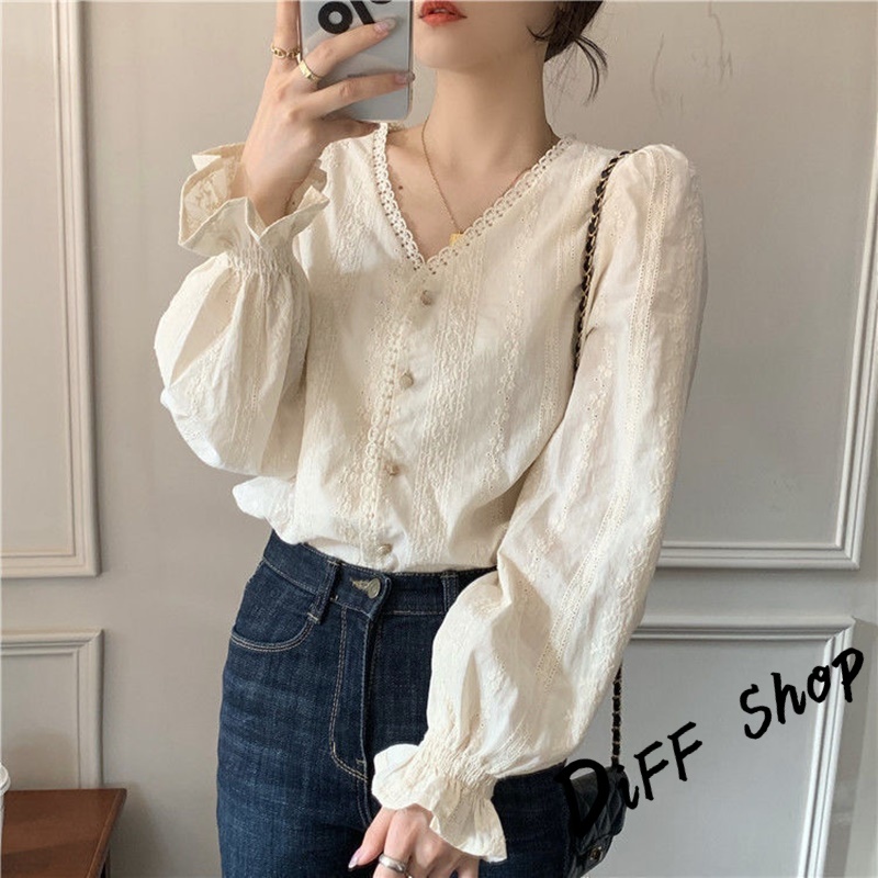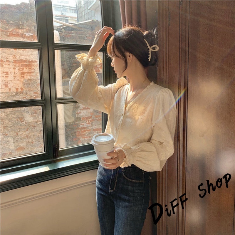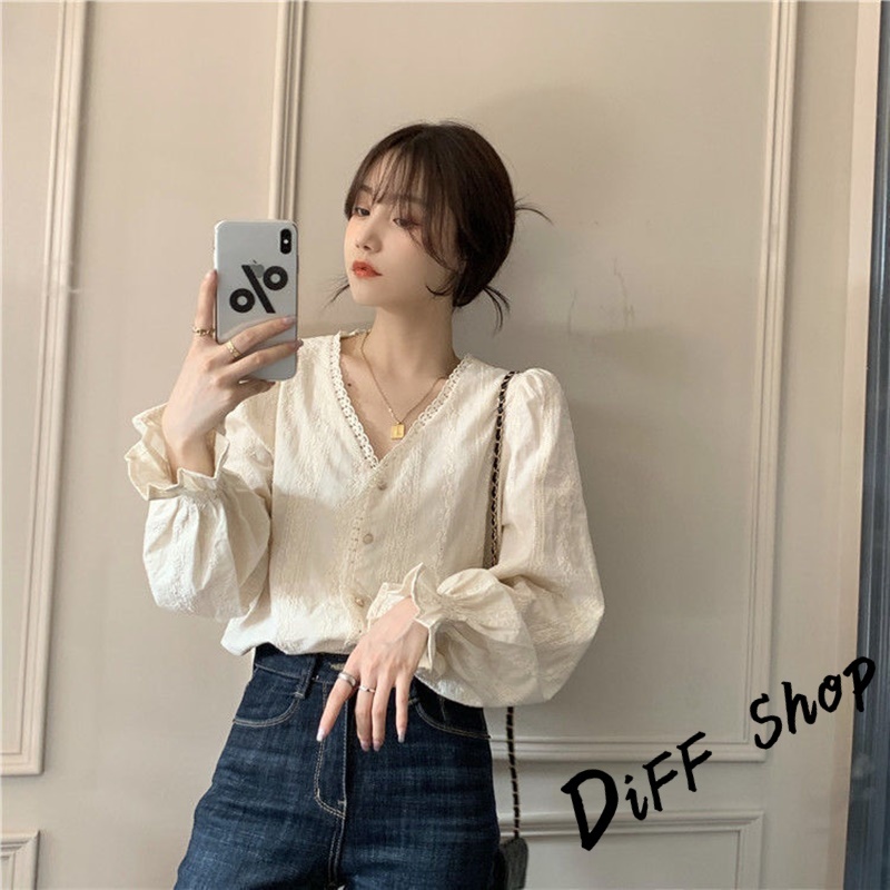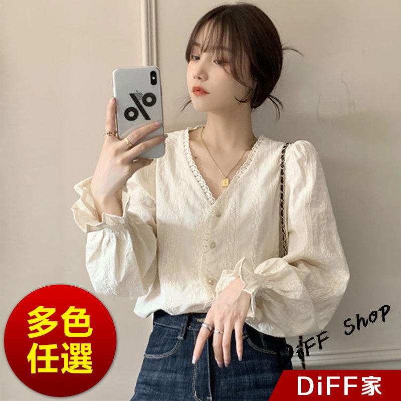 【DIFF】韓版法式氣質溫柔風長袖襯衫 長袖上衣 女裝 衣服 長袖t恤 秋冬女裝 冬季女裝 針織上衣【W557】【W557】杏色Shirts & BlousesDiFF shop