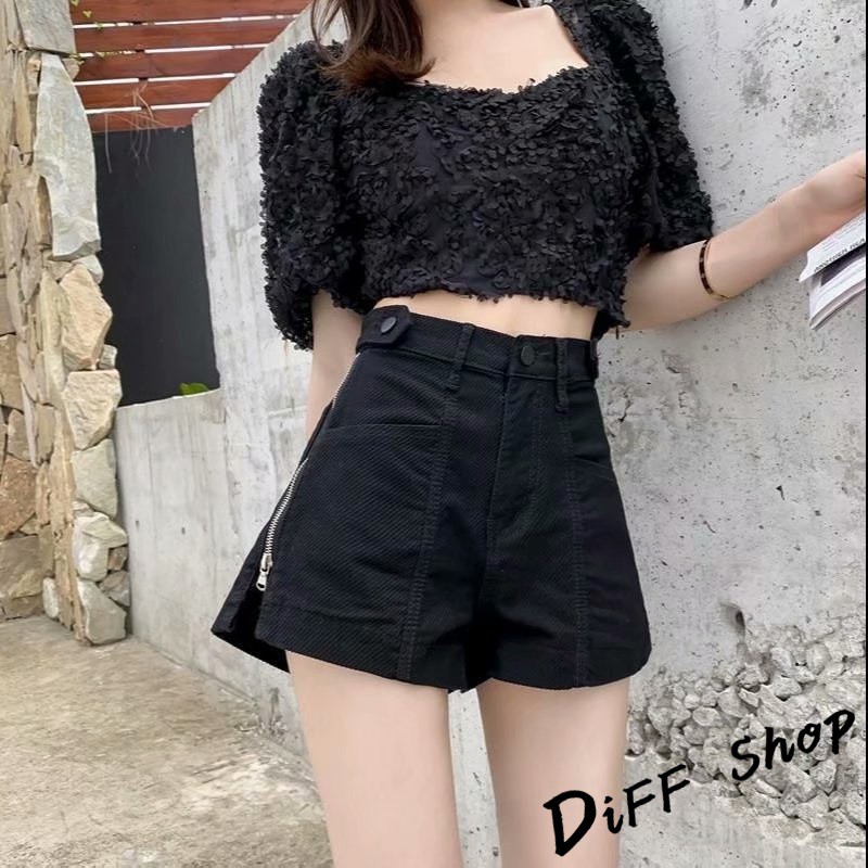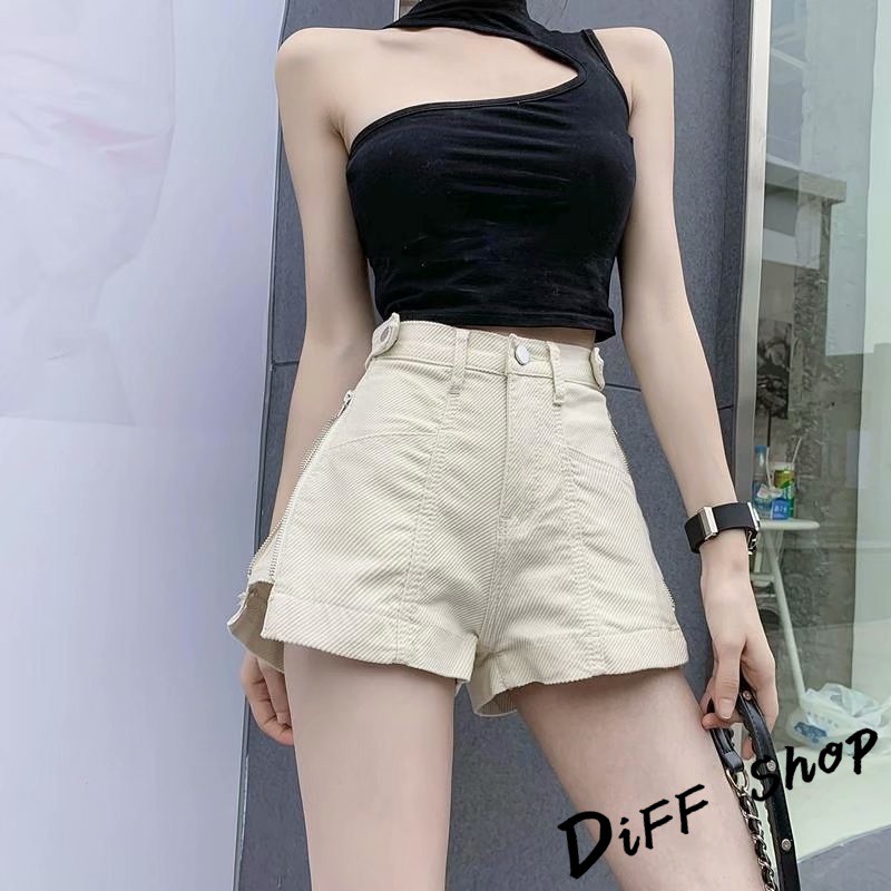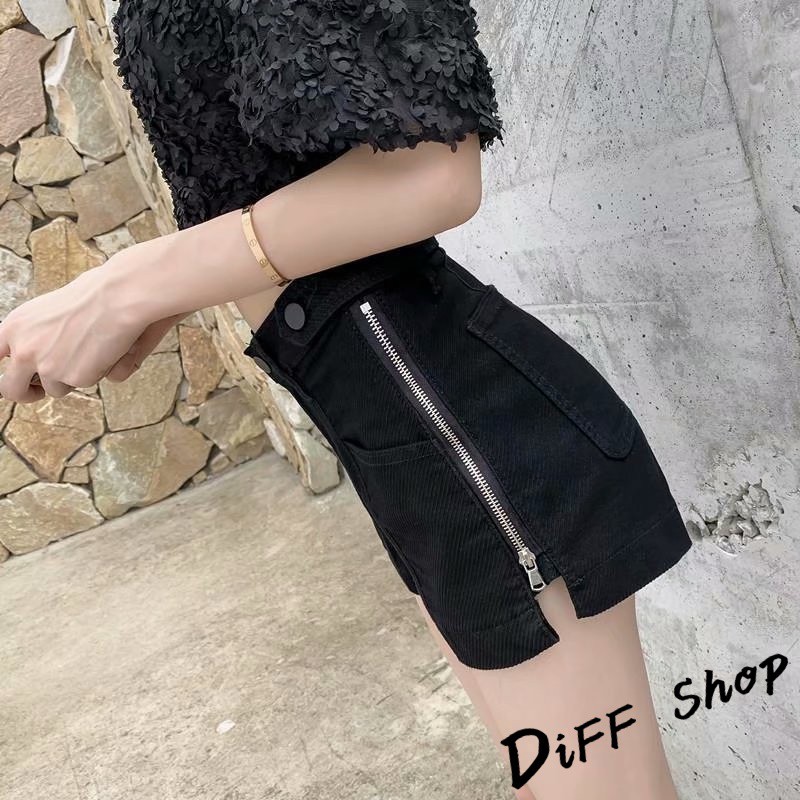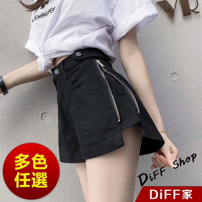 【DIFF】韓板高腰寬鬆顯瘦拉鍊牛仔短褲 休閒褲 短褲 褲子 運動短褲 女裝 休閒短褲【P152】【P152】黑色XL號|【P152】杏色M號|【P152】杏色L號|【P152】杏色XL號|【P152】黑色M號|【P152】黑色L號ShortsDiFF shop