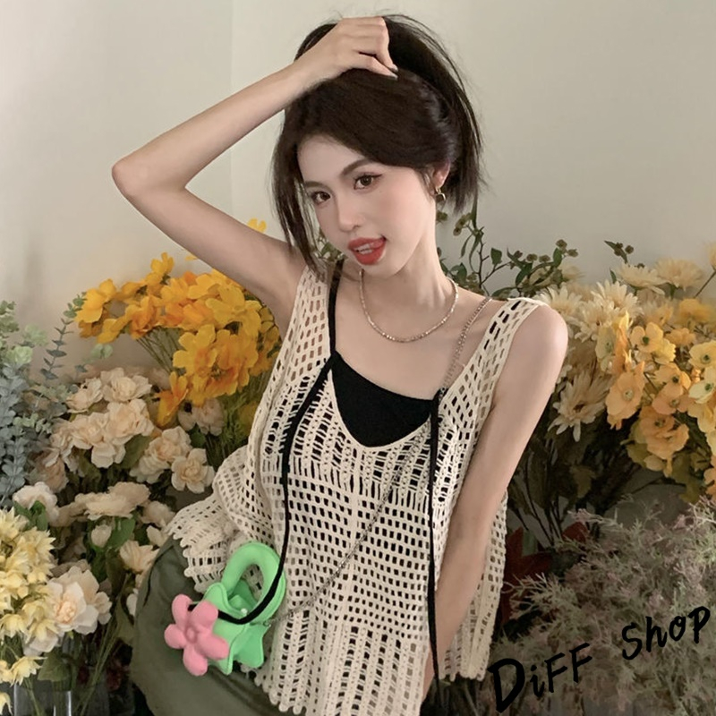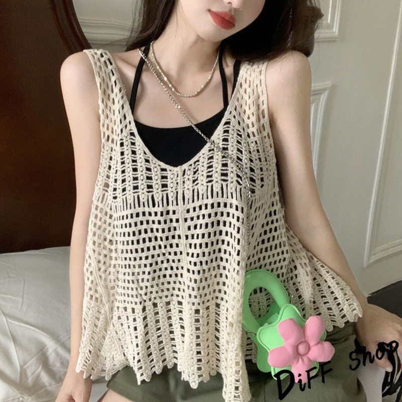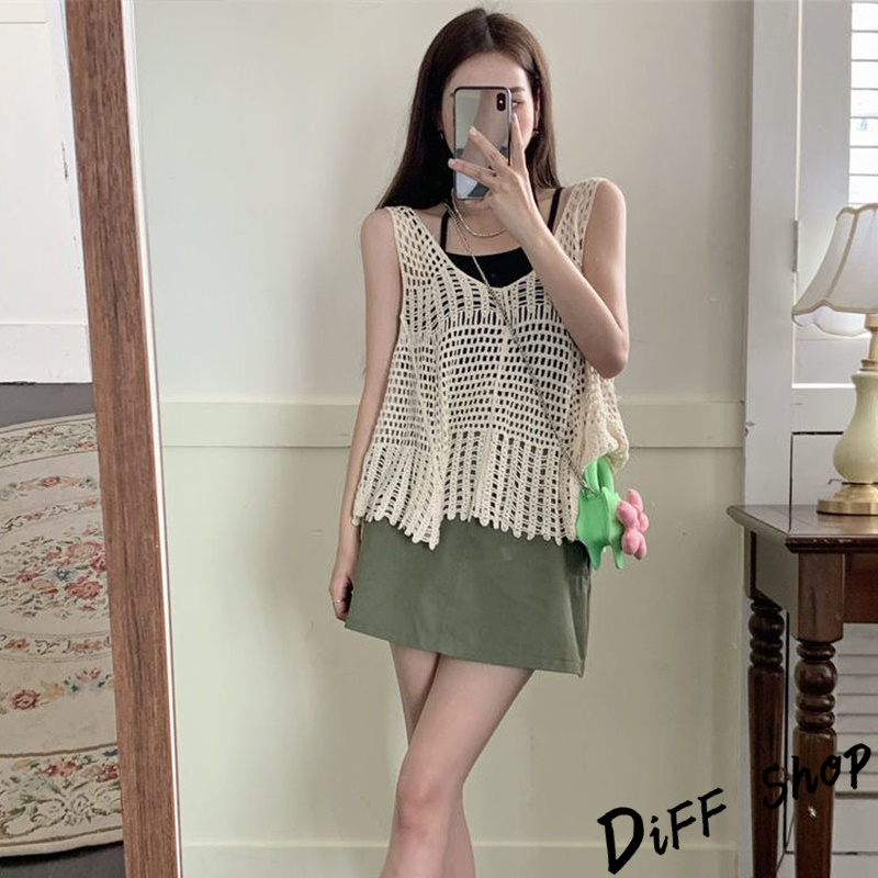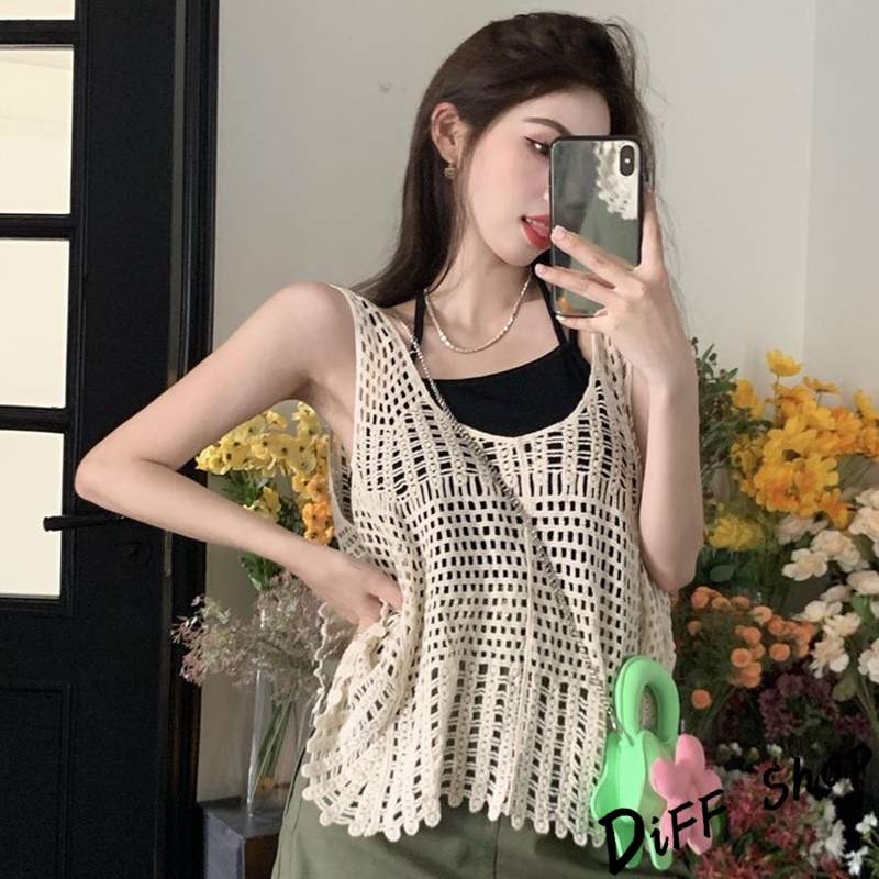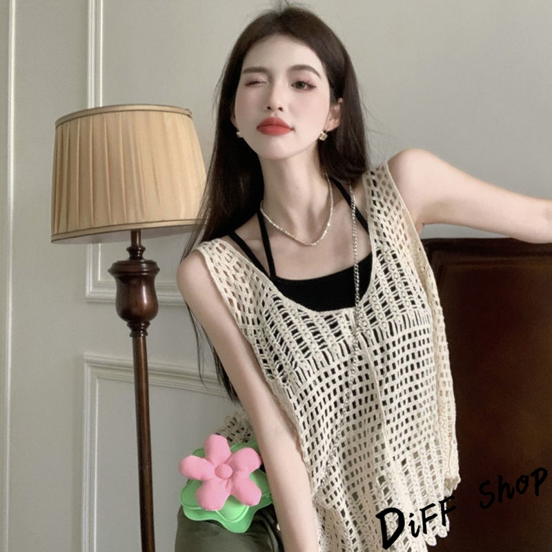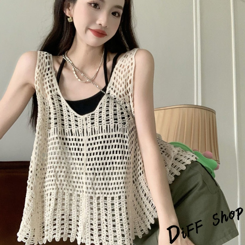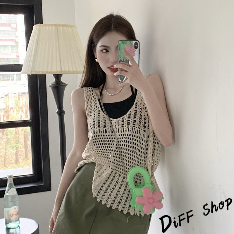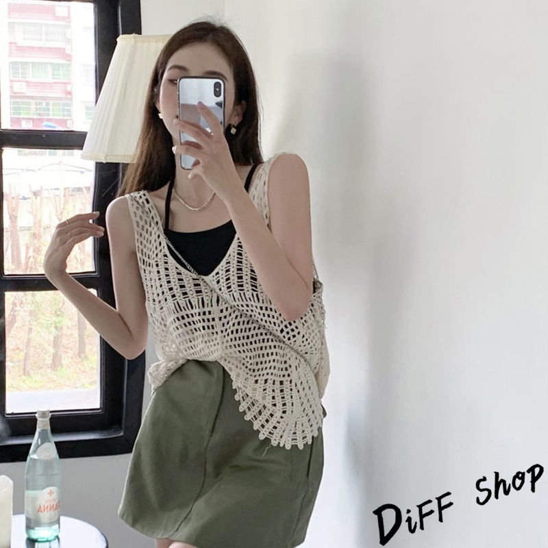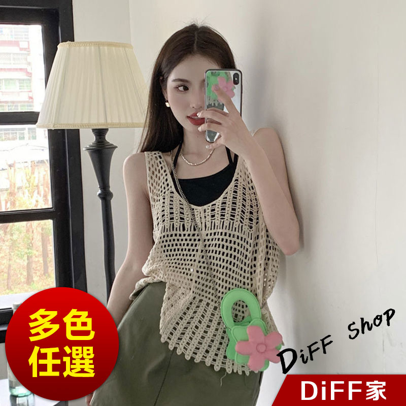 【DIFF】韓版復古寬鬆鉤花鏤空針織背心 背心 上衣 小可愛 女裝 衣服【V302】【V302】白色|【V302】杏色Tanks & CamisolesDiFF shop