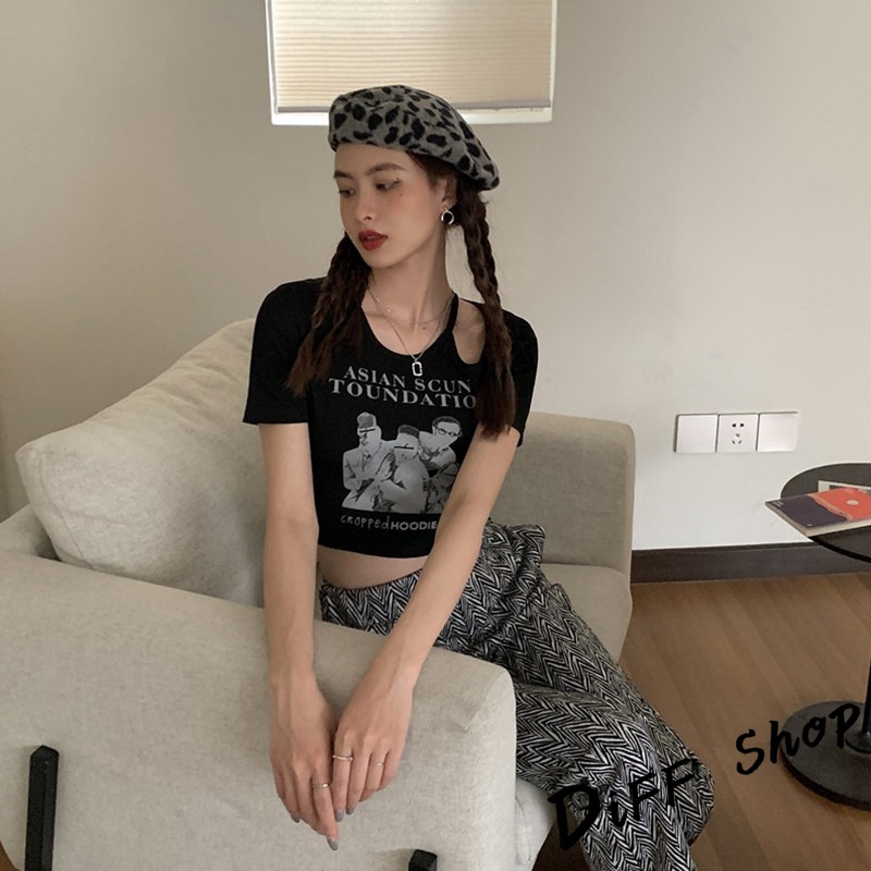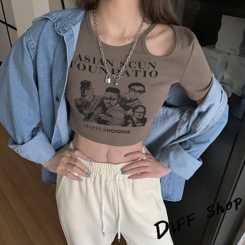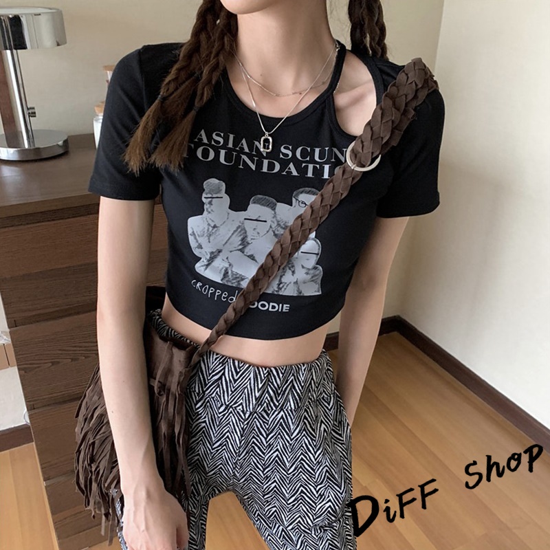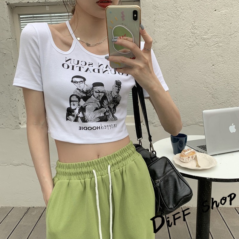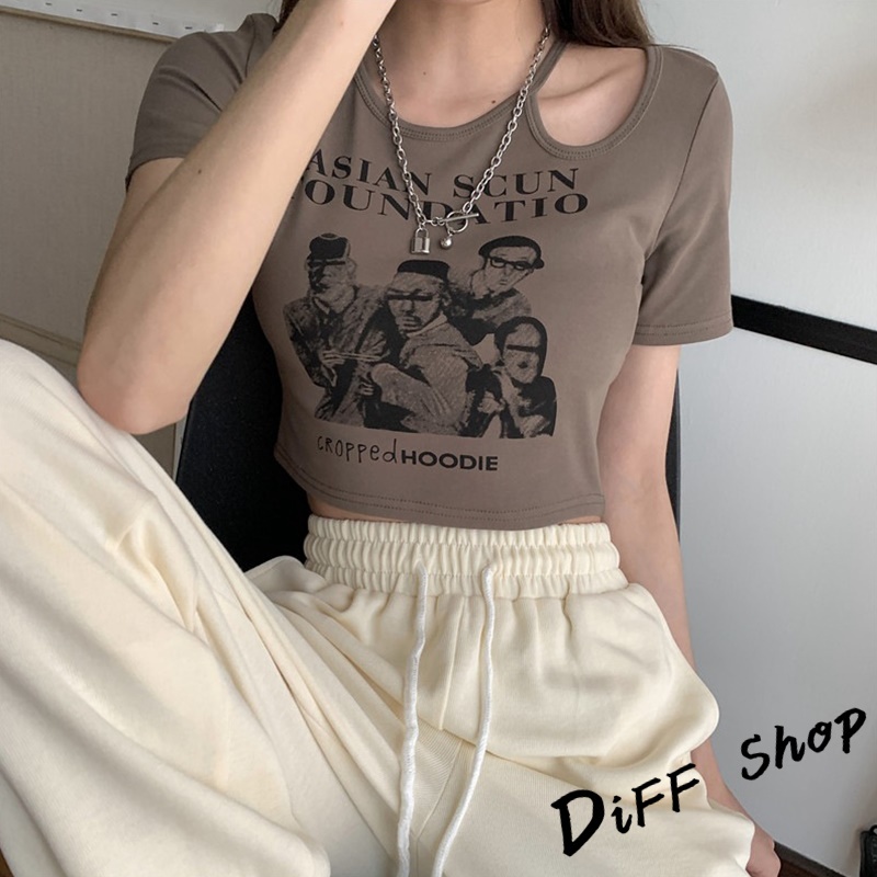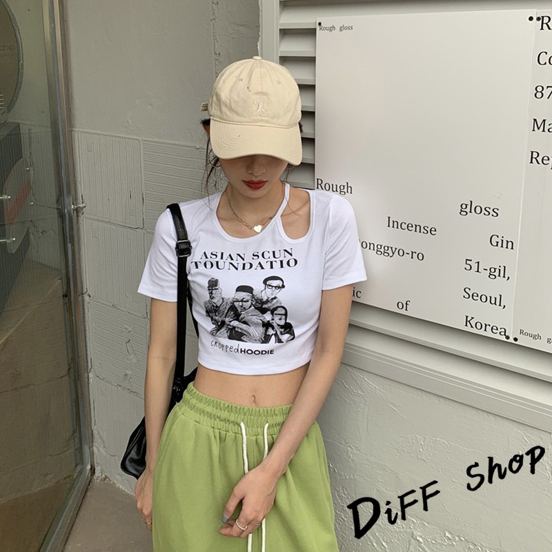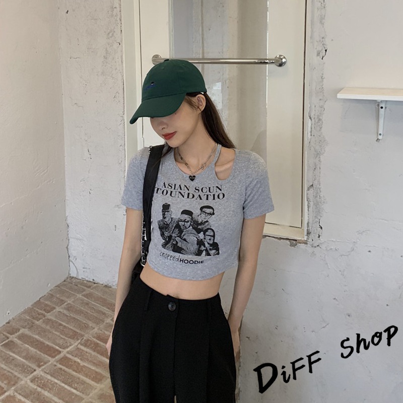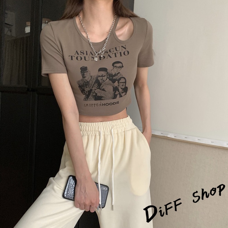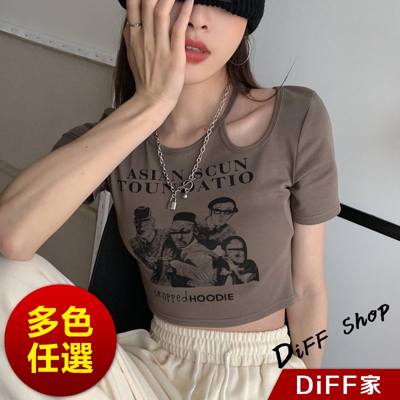 【DIFF】韓版美式復古小心機鏤空短版上衣 短袖上衣 短袖t恤 女裝 顯瘦上衣 衣服 寬鬆上衣 短板上衣【T446】【T446】白色|【T446】黑色|【T446】灰色|【T446】奶茶T-shirtsDiFF shop