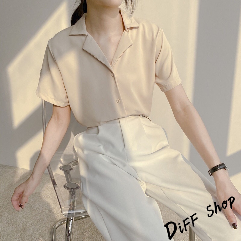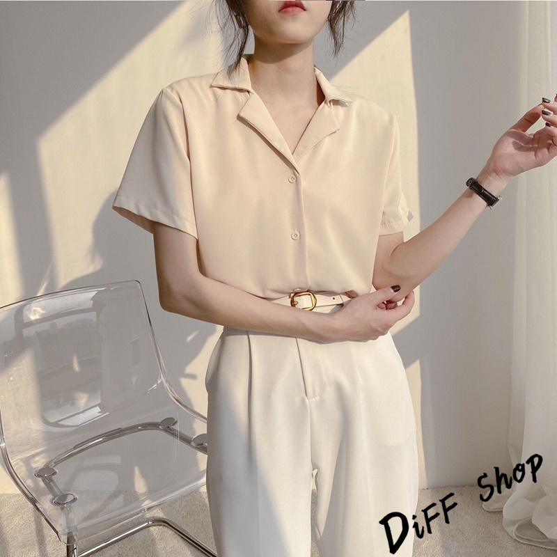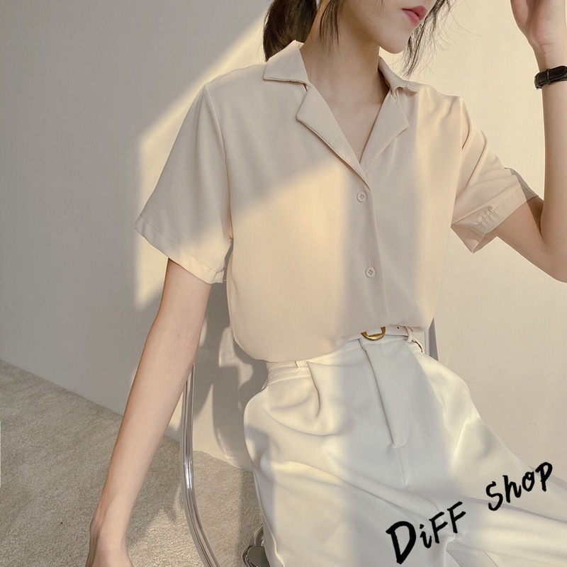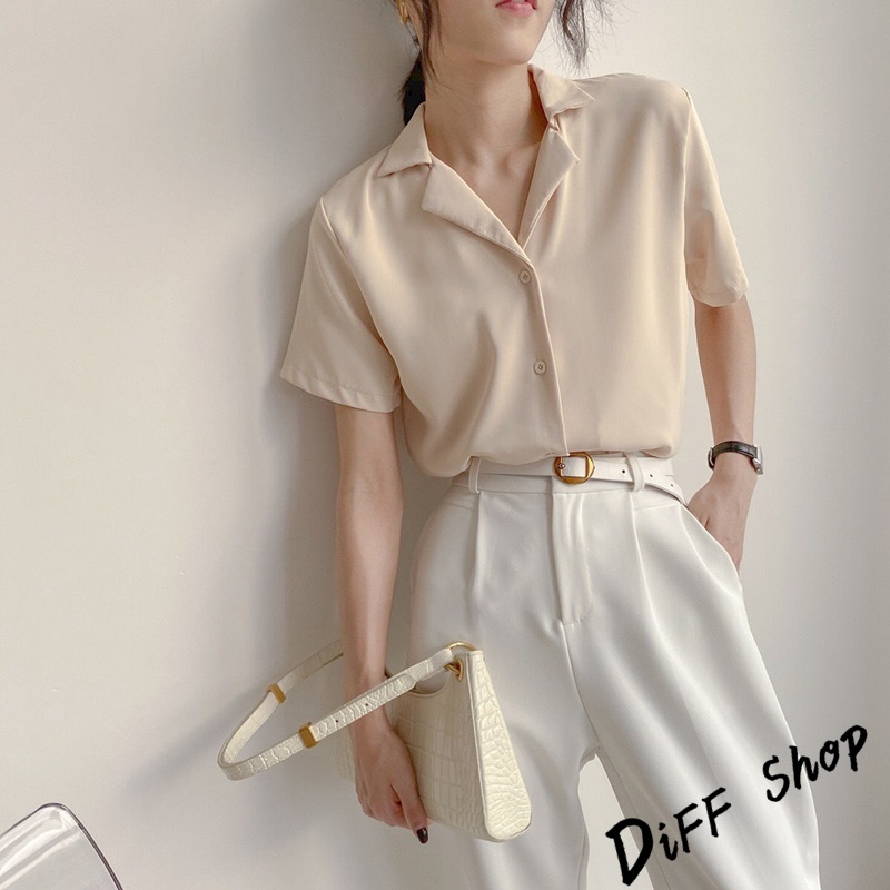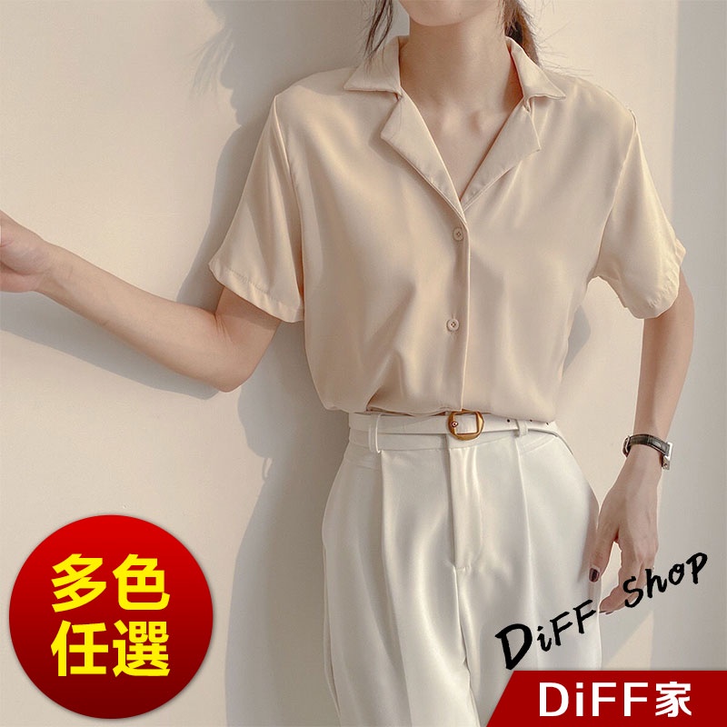 【DIFF】韓版氣質v領寬鬆雪紡襯衫 短袖上衣 短袖t恤 女裝 顯瘦上衣 衣服 寬鬆上衣 素T【T269】【T269】白色|【T269】杏色Shirts & BlousesDiFF shop