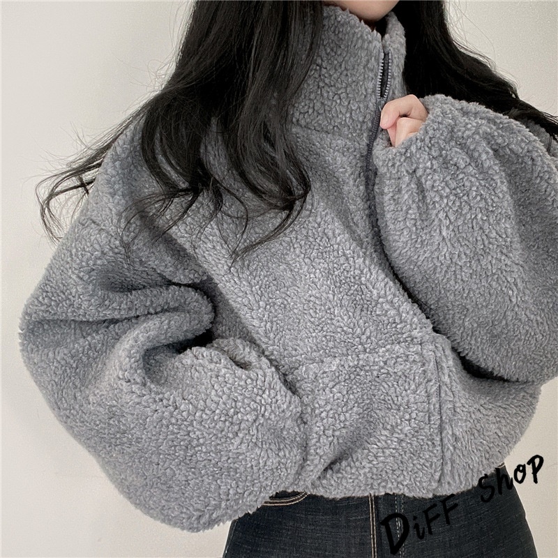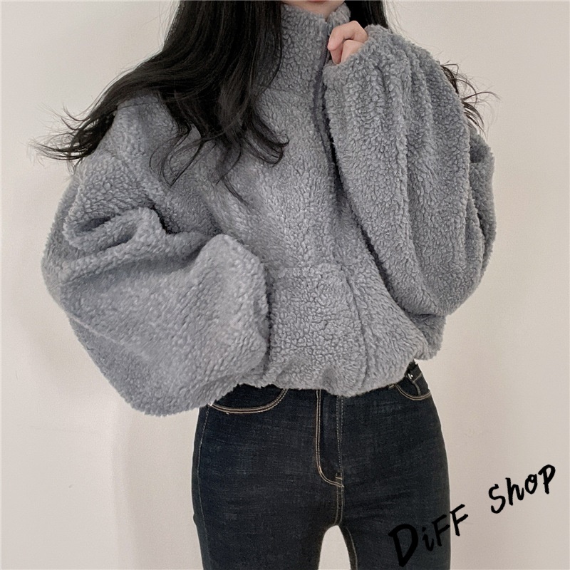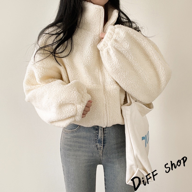 【DIFF】韓版泡泡袖慵懶風毛毛外套 上衣 女裝 衣服 外套 長袖上衣 短版外套 【J242】【J242】藏青|【J242】灰色|【J242】米白Winter Jackets & CoatsDiFF shop