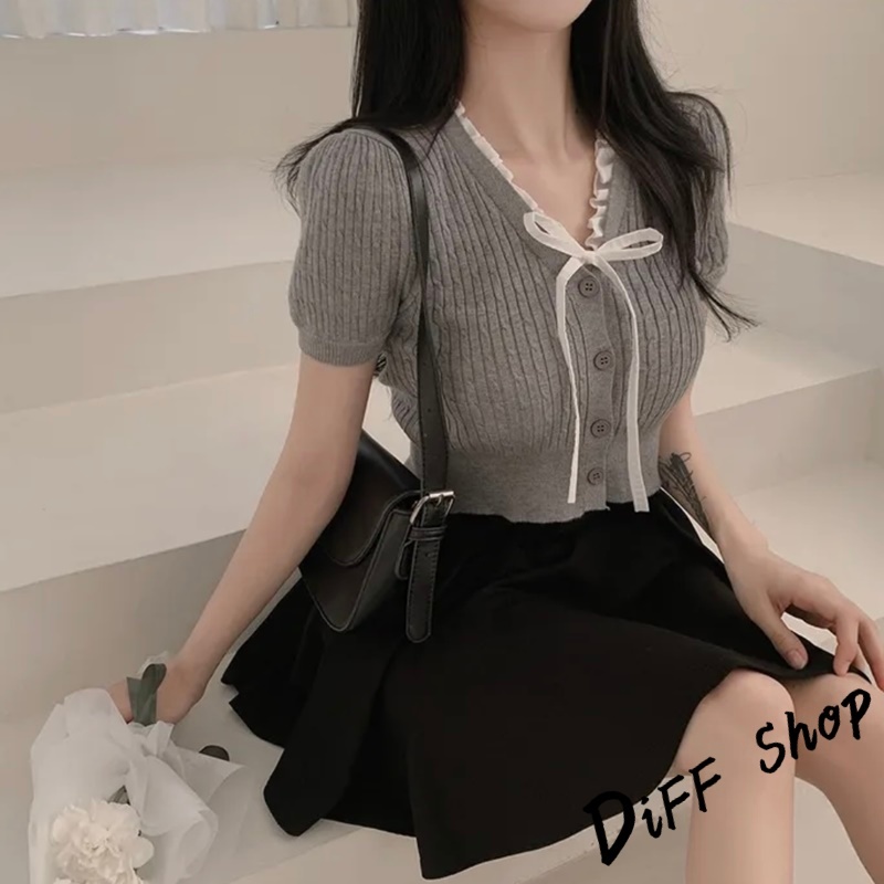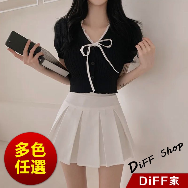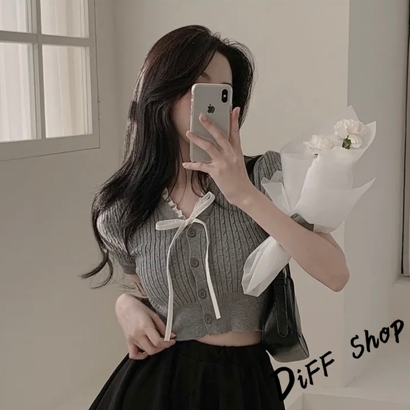 【DIFF】韓版設計感綁帶針織上衣 短袖上衣 顯瘦上衣 衣服 夏天女裝 短板上衣 短版t恤 女裝 短袖t恤女【T649】【T649】白色|【T649】灰色|【T649】黑色|【T649】杏色DiFF shop