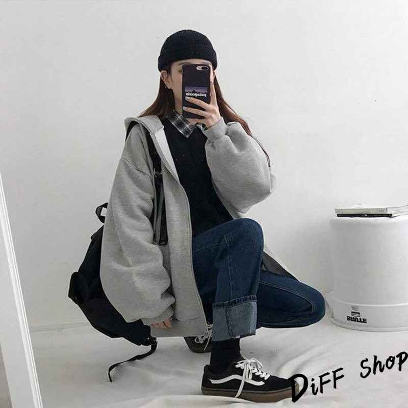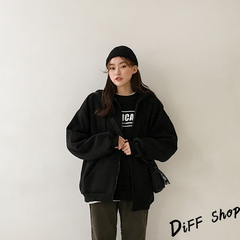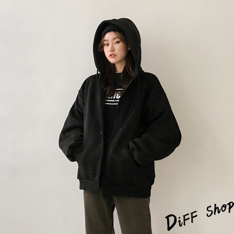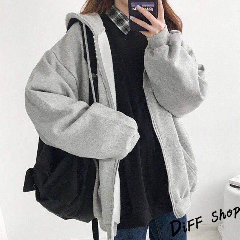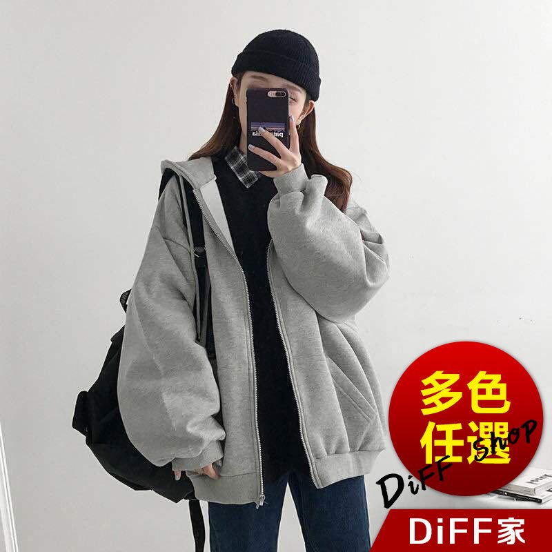 【DIFF】韓版寬鬆休閒內刷毛運動連帽外套 上衣 女裝 衣服 外套 長袖上衣 罩衫 防曬外套【J32】【J32】黑色|【J32】灰色|【J32】杏色|【J32】灰軍綠|【J32】藏青|【J32】奶茶|【J32】霧藍|【J32】白色JacketsDiFF shop