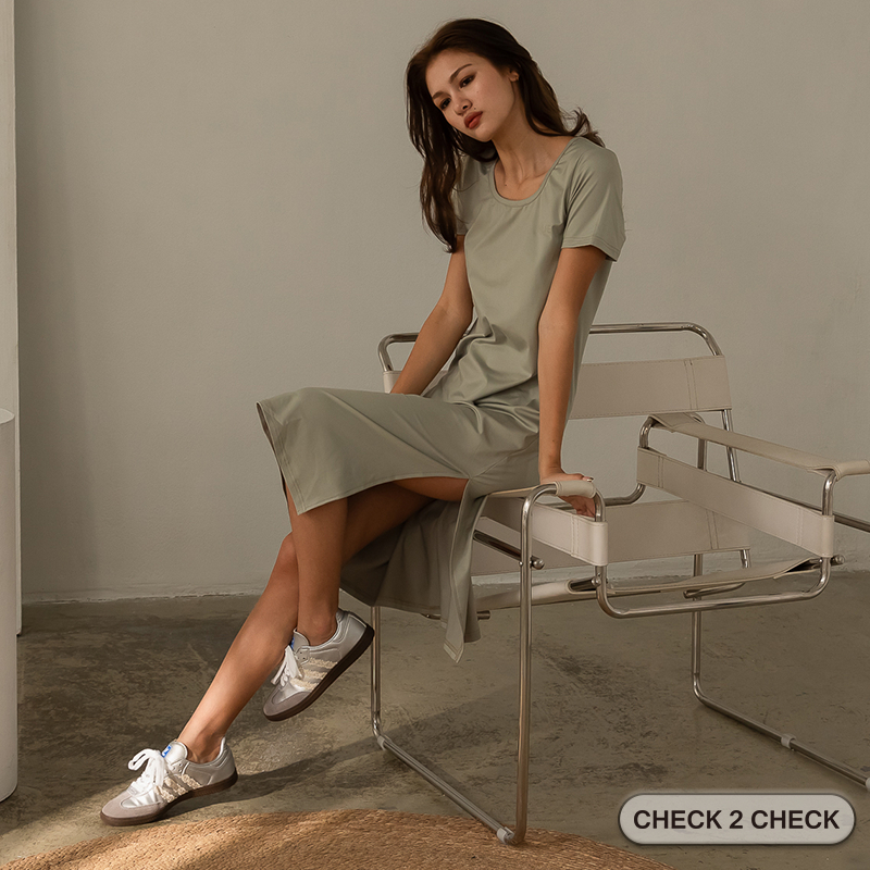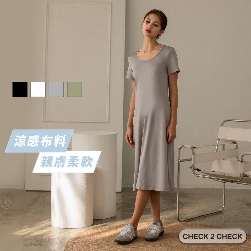 HUE-牛奶絲冰涼洋裝 涼感洋裝 冰棉 連身上衣 冰絲衣 親膚柔軟 U型領 開衩連身衣【CBW-080002】[現貨]白,XS|白,S|白,M|白,L|白,XL|黑,XS|黑,S|黑,M|黑,L|黑,XL|灰,XS|灰,S|灰,M|灰,L|灰,XL|綠,XS|綠,S|綠,M|綠,L|綠,XLCHECK 2 CHECK官方旗艦店