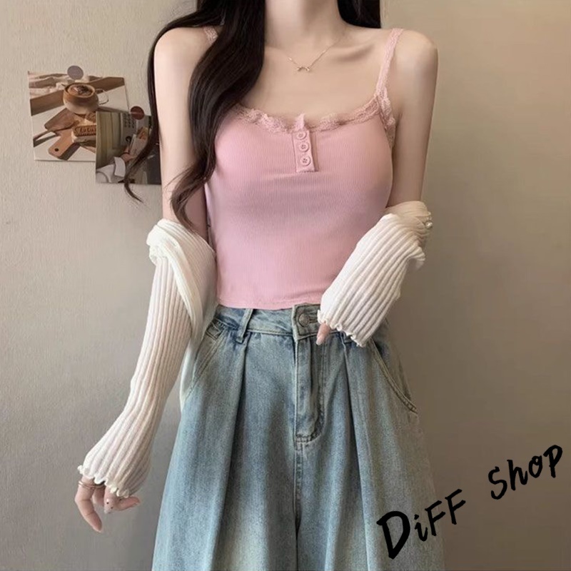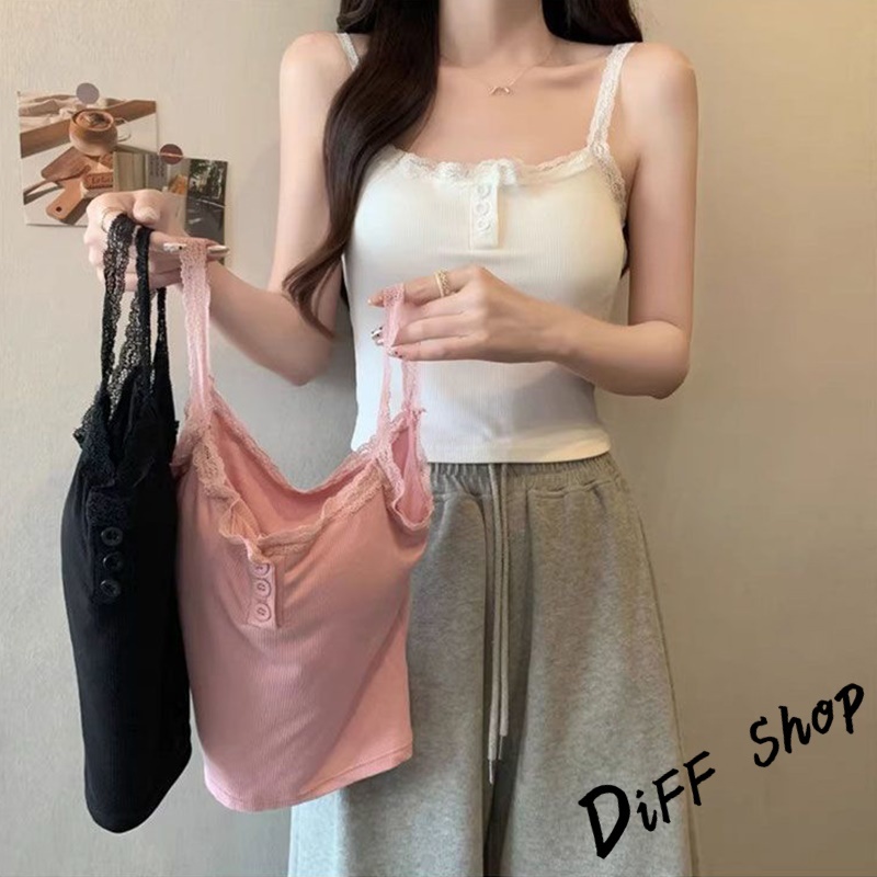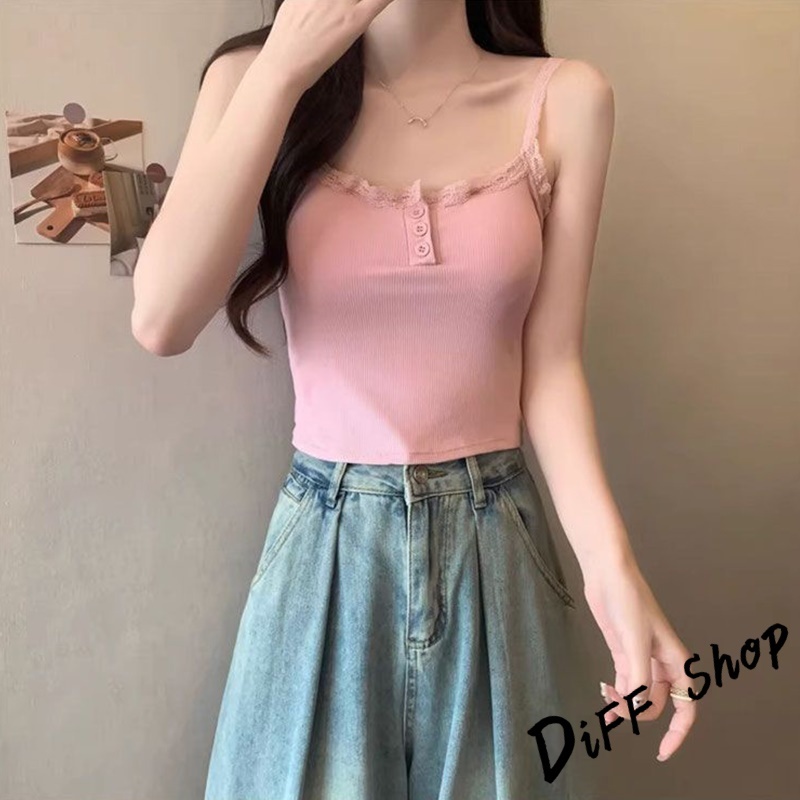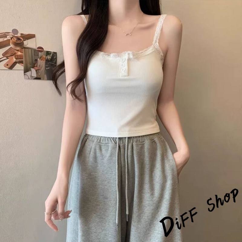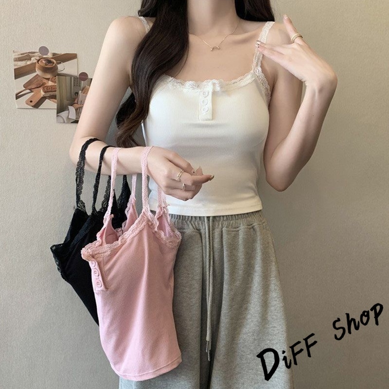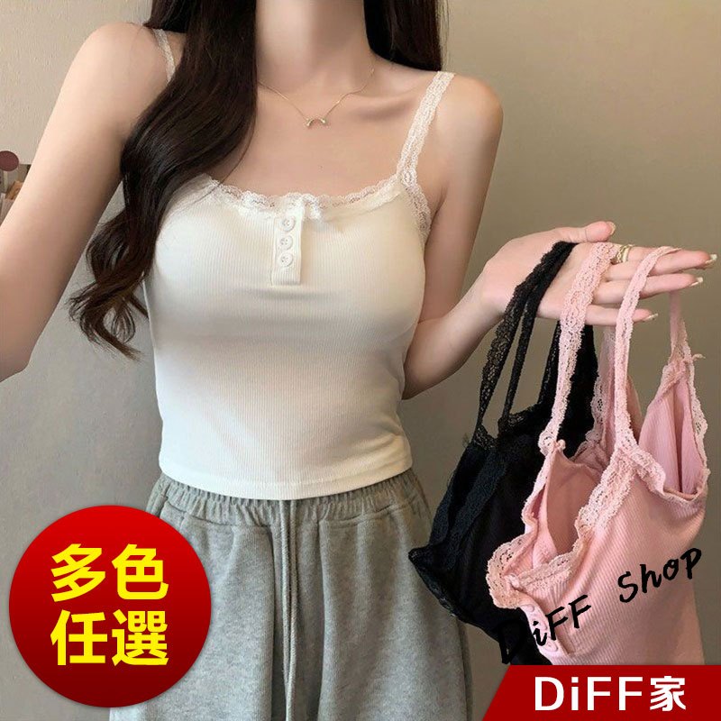 【DIFF】韓版蕾絲吊帶美背背心 帶胸墊免穿內衣 小可愛 女裝 衣服 短版上衣 小背心 夏天女裝 運動背心【V359】【V359】黑色|【V359】白色Tanks & CamisolesDiFF shop
