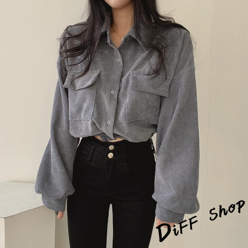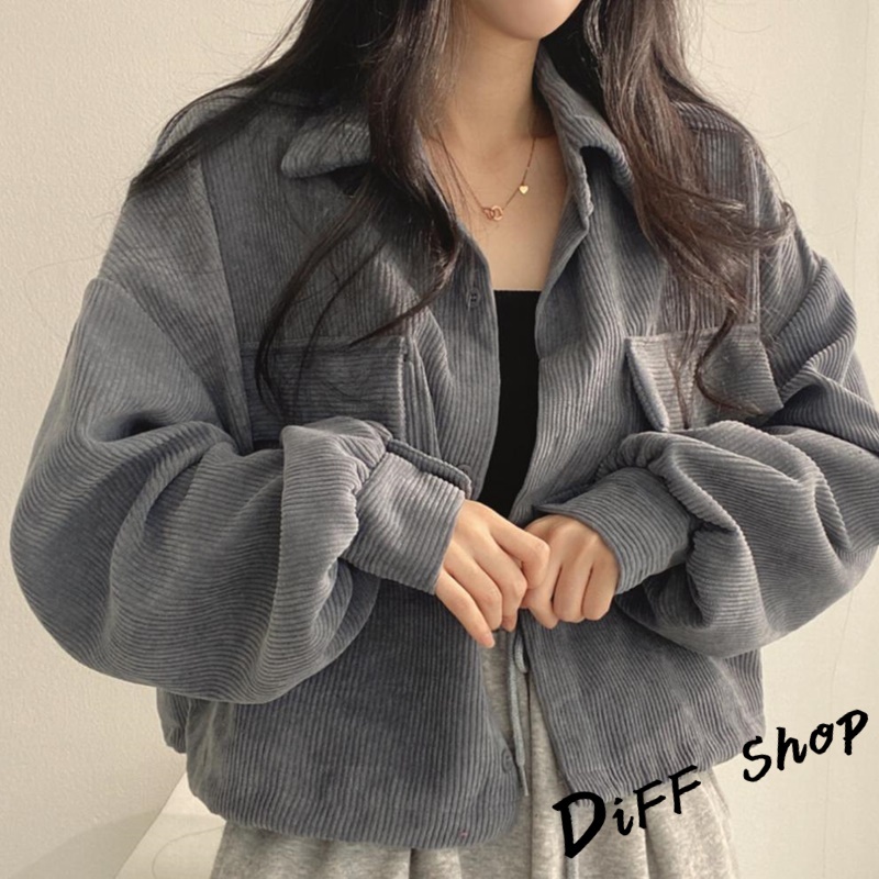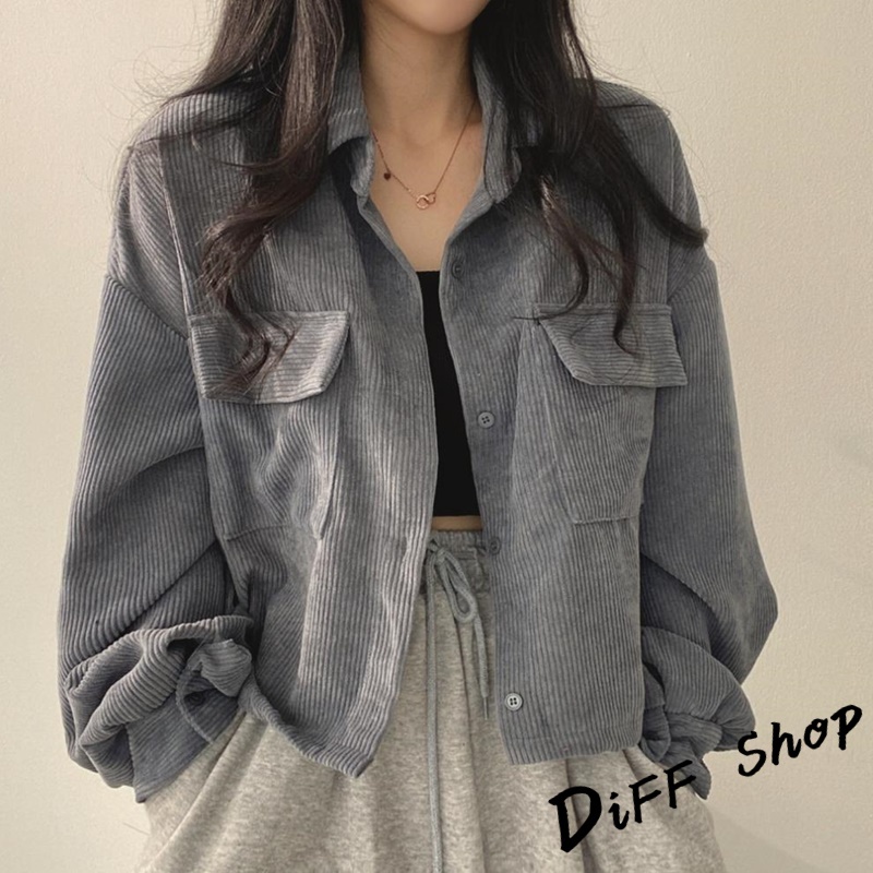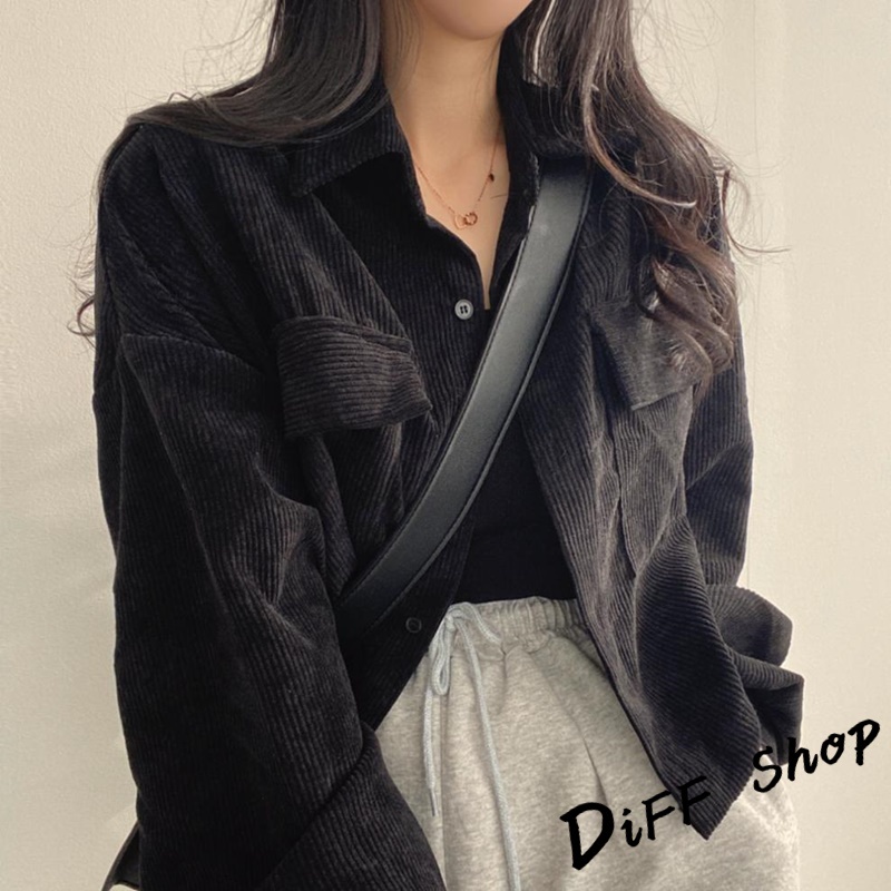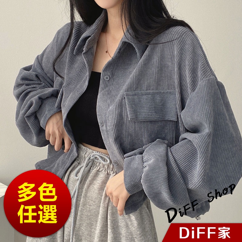 【DIFF】韓版復古寬鬆燈芯絨襯衫外套 短版外套 短版上衣 女裝 衣服 薄外套 罩衫 防曬外套 長袖上衣【J215】【J215】黑色|【J215】奶茶色|【J215】灰藍Shirts & BlousesDiFF shop